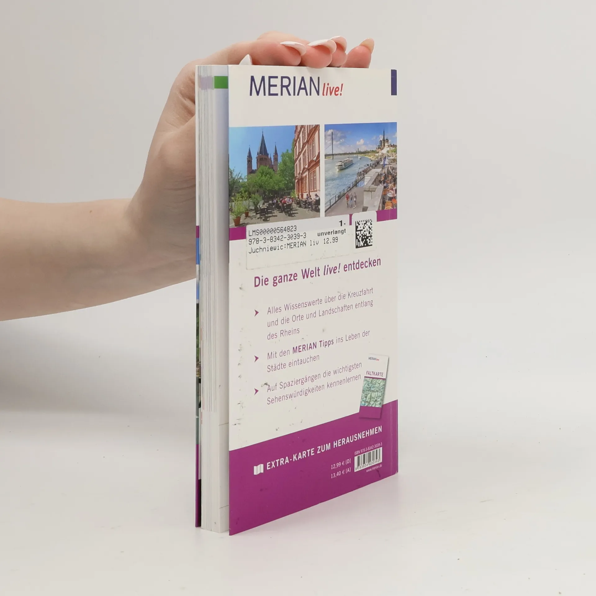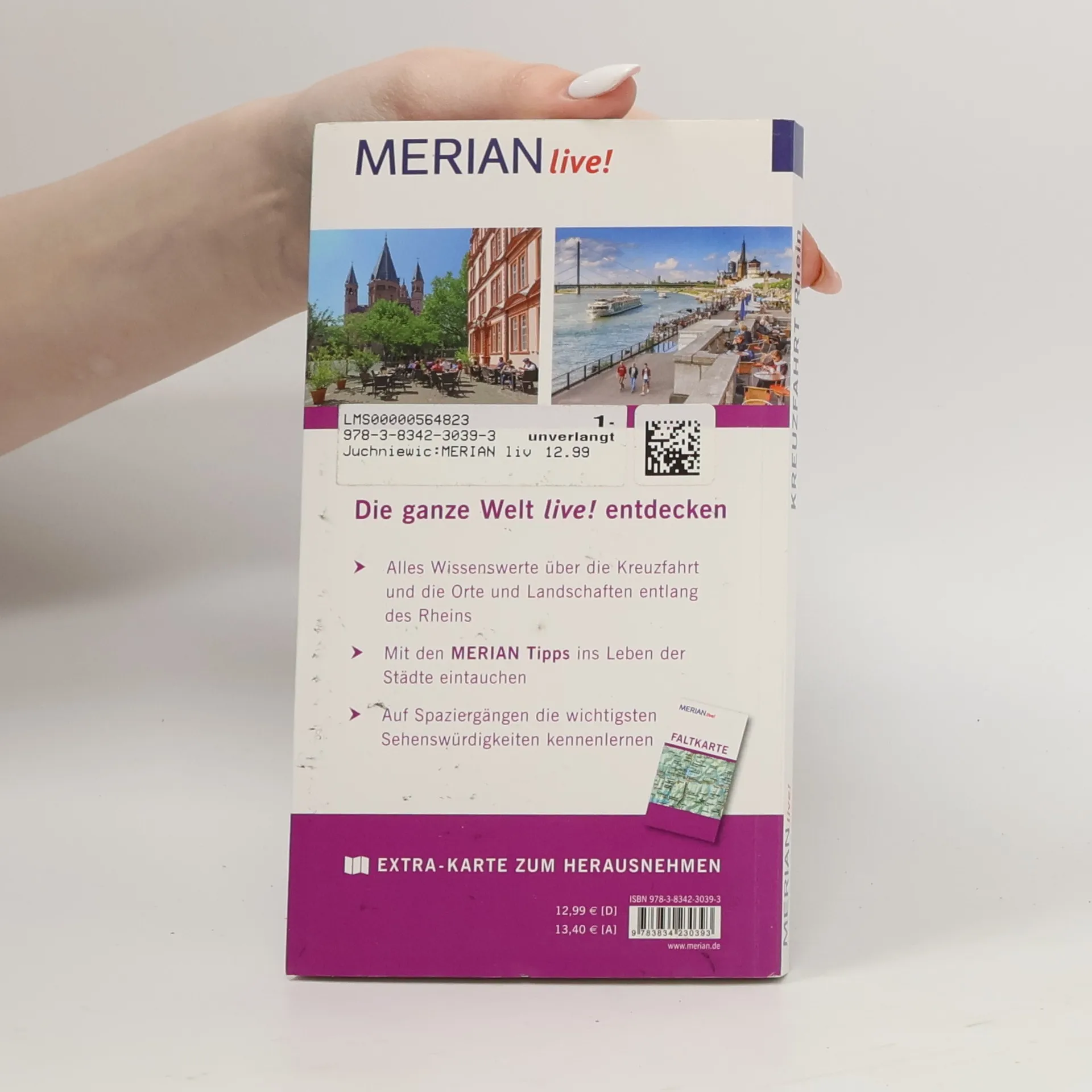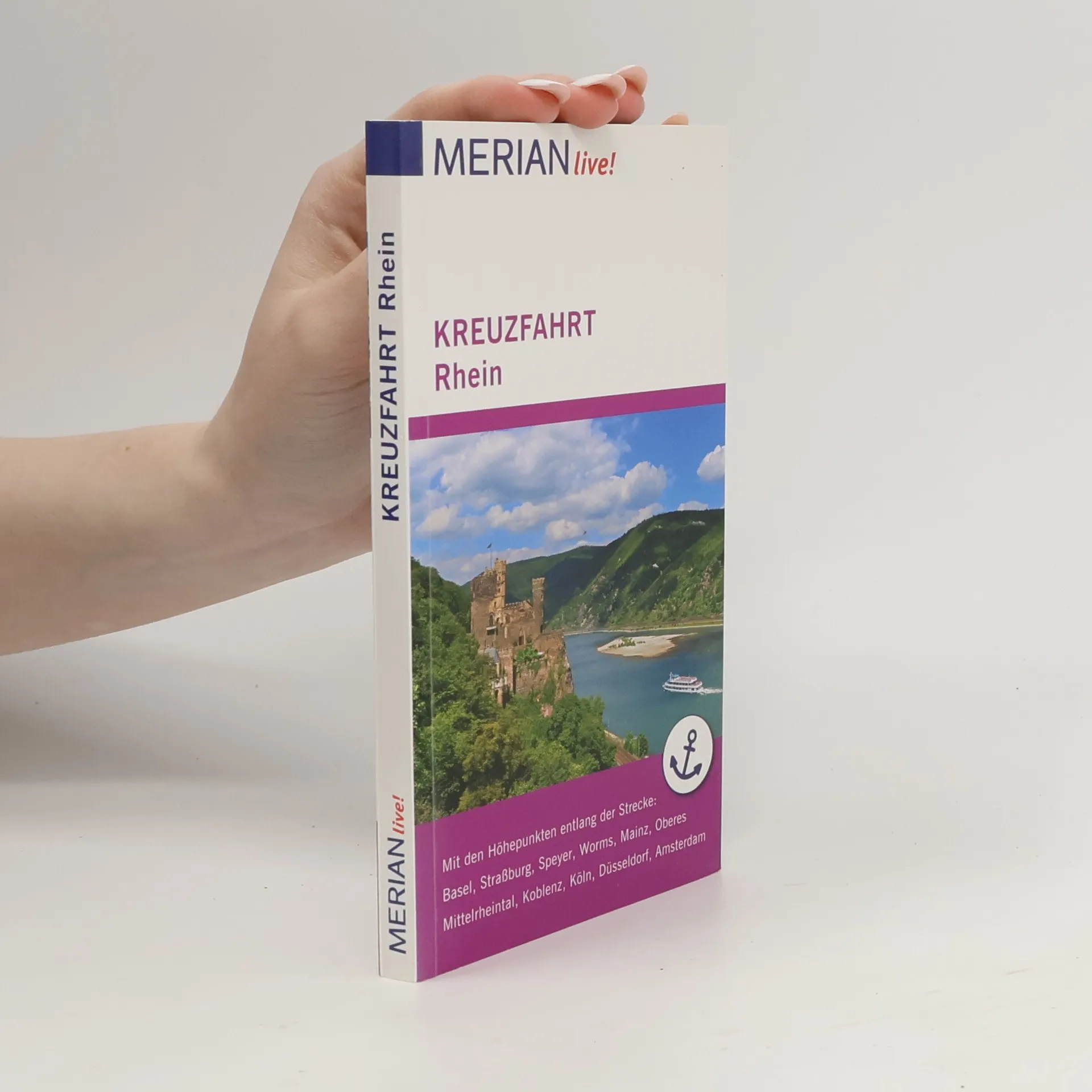 Mit MERIAN live! auf Rheinkreuzfahrt Dem Zauber der langsam vorübergleitenden Rheinlandschaft kann man sich nur schwer entziehen. „Vater Rhein“, der mächtige, geschichtsträchtige Strom zwischen Alpen und Nordsee, offenbart viele Gesichter. Wie ein großer Panoramafilm ziehen Burgen, Winzerorte und Städte vorbei und laden den Rheinkreuzfahrer zum Kennenlernen ein - wie gut, dass die Schiffe oft anlegen! Kompakt und übersichtlich bietet MERIAN live! alles Wissenswerte für einen gelungenen Aufenthalt auf dem Rhein: - MERIAN TopTen : Die 10 wichtigsten Sehenswürdigkeiten auf einen Blick - Mit 10 MERIAN Tipps die weniger bekannten Seiten der Städte und Orte auf der Strecke entdecken - Fundierte Beschreibungen aller wichtigen Orte, Sehenswürdigkeiten und Museen von A bis Z - Empfehlungen für Essen und Trinken, Einkaufen, Ausgehen sowie Tipps für den umweltbewussten Urlaub - Stadtpläne von Basel, Straßburg, Speyer, Worms, Mainz, Koblenz, Köln, Düsseldorf und Amsterdam zur leichten Orientierung - Mit praktischer Extra-Karte zum Herausnehmen