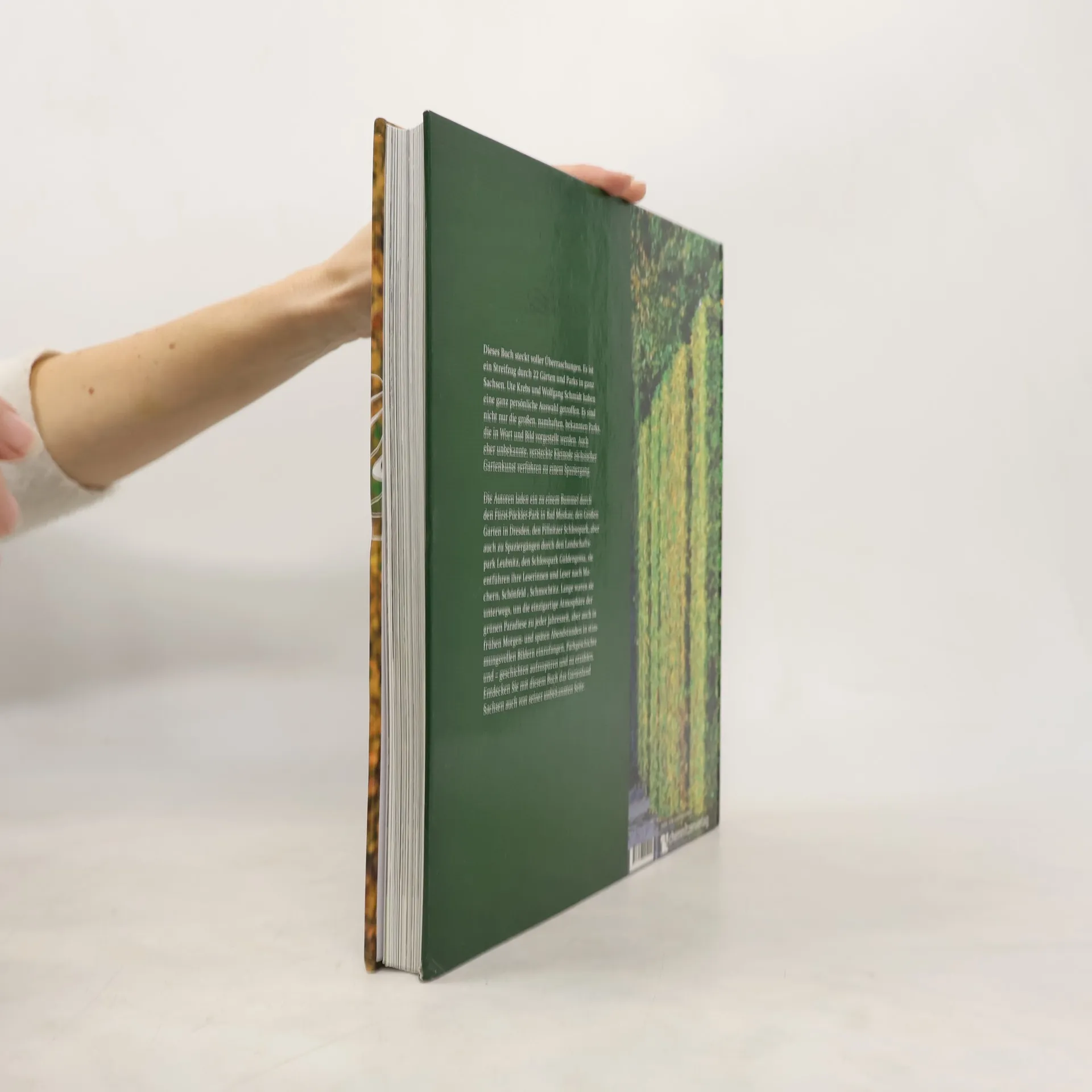 Dieses Buch steckt voller Überraschungen. Es ist ein Streifzug durch 22 Gärten und Parks in ganz Sachsen. Ute Krebs und Wolfgang Schmidt haben eine ganz persönliche Auswahl getroffen. Es sind nicht nur die großen, namhaften, bekannten Parks, die in Wort und Bild vorgestellt werden. Auch eher unbekannte, versteckte Kleinode sächsischer Gartenkunst verführen zu einem Spaziergang. Die Autoren laden ein zu einem Bummel durch den Fürst-Pückler-Park in Bad Muskau, den Großen Garten in Dresden, den Pillnitzer Schlosspark, aber auch zu Spaziergängen durch den Landschaftspark Leubnitz, den Schlosspark Güldengossa, sie entführen ihre Leserinnen und Leser nach Machern, Schönfeld, Schmochtitz. Lange waren sie unterwegs, um die einzigartige Atmosphäre der grünen Paradiese zu jeder Jahreszeit, aber auch in frühen Morgen- und späten Abendstunden in stimmungsvollen Bildern einzufangen, Parkgeschichte und – geschichten aufzuspüren und zu erzählen. Entdecken Sie mit diesem Buch das Gartenland Sachsen auch von seiner unbekannten Seite.
