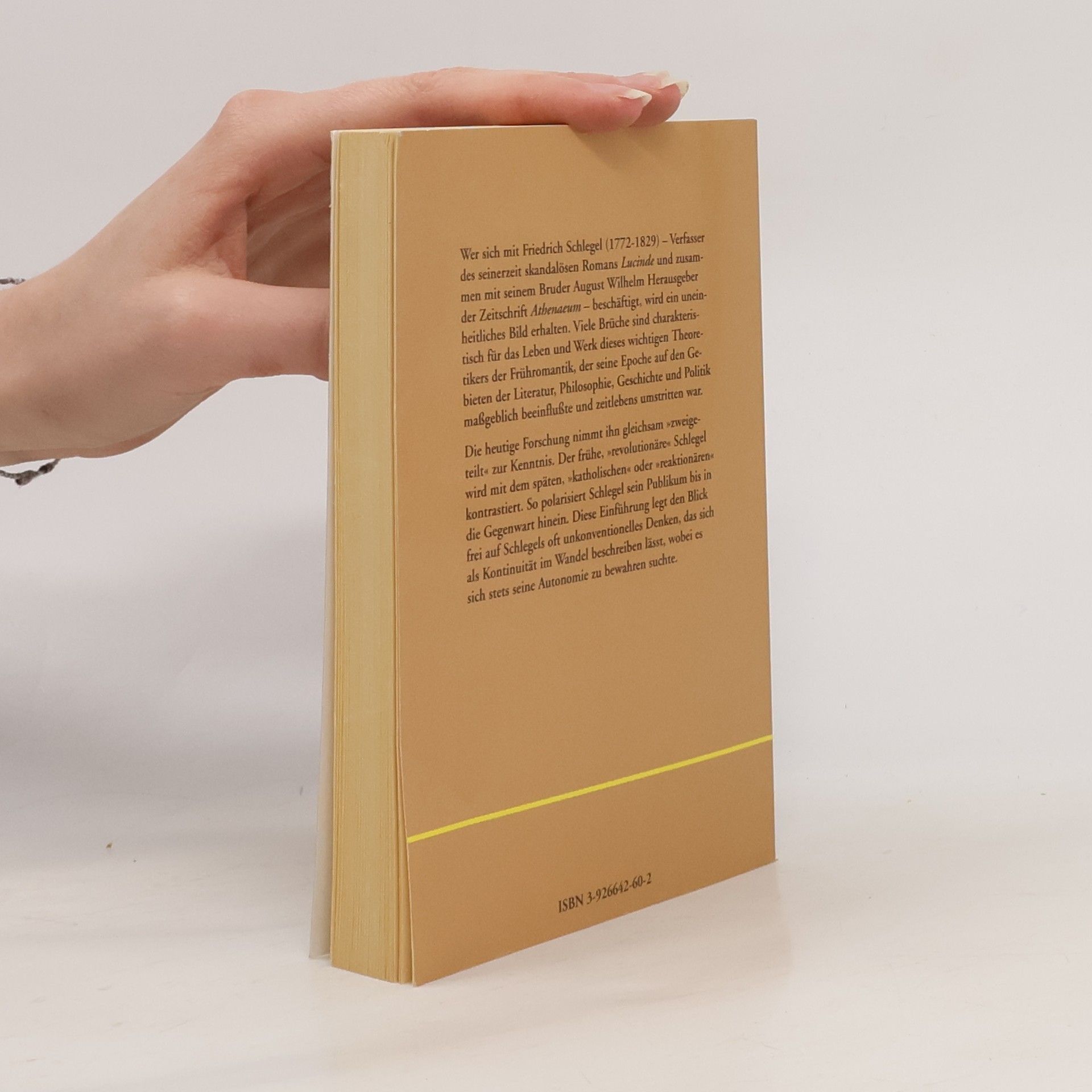 Das Leben und Werk eines wichtigen Theoretikers der Frühromantik, der seine Epoche auf den Gebieten der Literatur, Philosophie, Geschichte und Politik maßgeblich beeinflusste. Sein vielfältiges und immer noch provozierendes Werk hat bis in unsere Gegenwart hinein nichts an überraschender Aktualität verloren. Die Einführung legt den Blick frei auf einen unkonventionellen Denker, der sich stets seine Autonomie bewahren konnte.