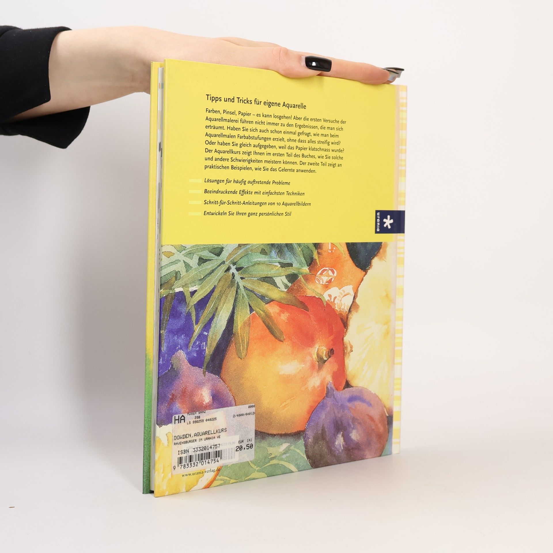 Faszinierende Ergebnisse mit Aquarellfarben erzielen, dieser Aquarellkurs hilft dabei Schritt-für-Schritt. Neben einer breiten Materialeinführung bietet dieses Buch alles Wissenswerte rund um den Gebrauch von Aquarellfarben. Ob Nass-auf-Nass oder Nass-auf-Trocken, ob Spritzen oder Aufbringen von Salz, dem Einsteiger wird eine reiche Palette von Techniken aufgezeigt. An 10 Aquarellmotiven vom Autor und anderen Profi-Aquarellmalern werden die Techniken im Bild umgesetzt, wobei eine kleinschrittige Fotodarstellung das Erlernen wesentlich erleichtert. Dabei wird der Leser angeregt, die eigene Kreativität zu entdecken und zu entfalten.