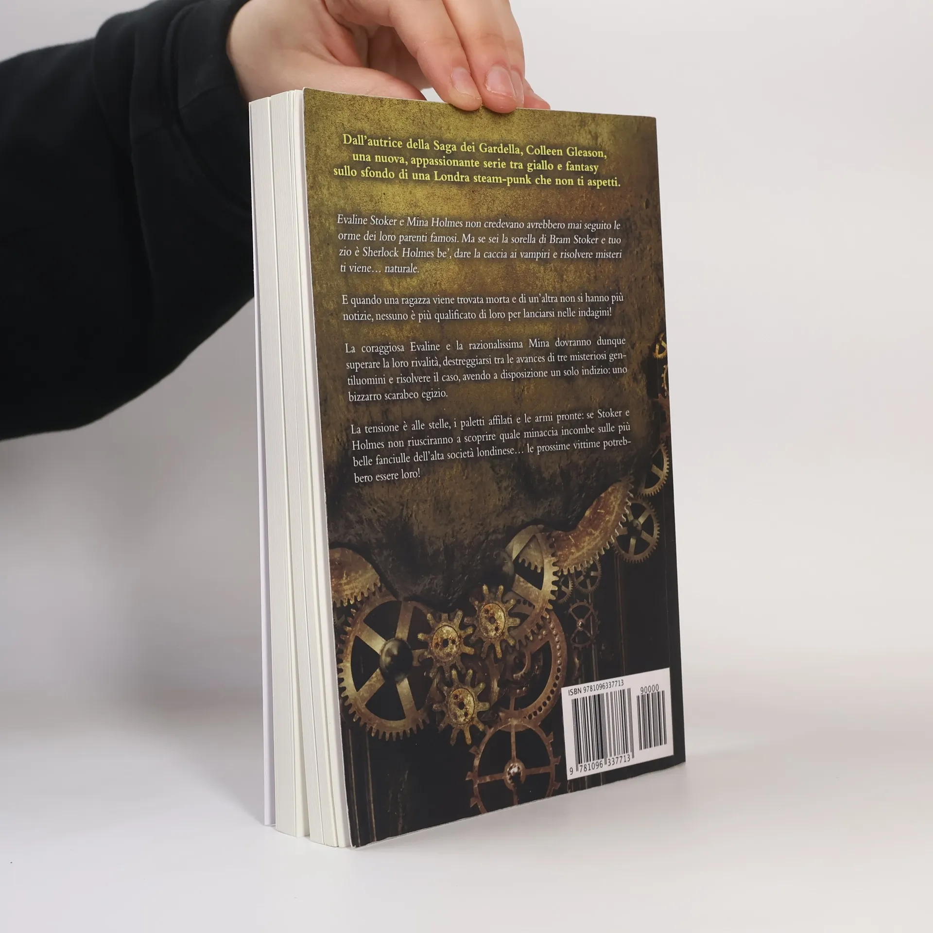 Dall'autrice della Saga dei Gardella, Colleen Gleason, una nuova, appassionante serie tra giallo e fantasy sullo sfondo di una Londra steam-punk che non ti aspetti.Evaline Stoker e Mina Holmes non credevano avrebbero mai seguito le orme dei loro parenti famosi. Ma se sei la sorella di Bram Stoker e tuo zio è Sherlock Holmes be', dare la caccia ai vampiri e risolvere misteri ti viene... naturale.E quando una ragazza viene trovata morta e di un'altra non si hanno più notizie, nessuno è più qualificato di loro per lanciarsi nelle indagini!La coraggiosa Evaline e la razionalissima Mina dovranno dunque superare la loro rivalità, destreggiarsi tra le avances di tre misteriosi gentiluomini e risolvere il caso, avendo a disposizione un solo indizio: uno bizzarro scarabeo egizio.La tensione è alle stelle, i paletti affilati e le armi pronte: se Stoker e Holmes non riusciranno a scoprire quale minaccia incombe sulle più belle fanciulle dell'alta società londinese... le prossime vittime potrebbero essere loro!