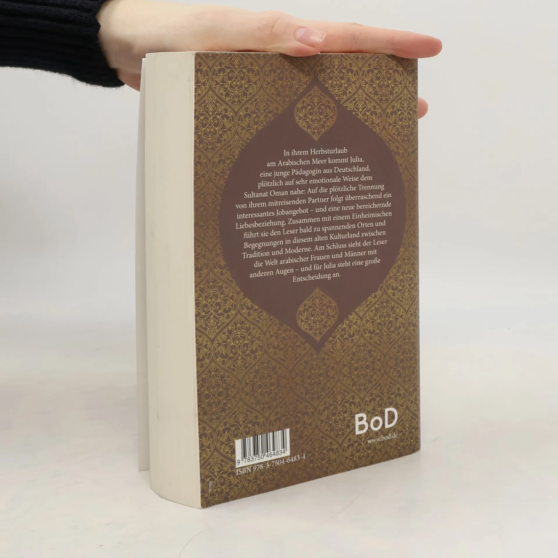 In ihrem Herbsturlaub am Arabischen Meer kommt Julia, eine junge Pädagogin aus Deutschland, plötzlich auf sehr emotionale Weise dem Sultanat Oman Auf die plötzliche Trennung von ihrem mitreisenden Partner folgt überraschend ein interessantes Jobangebot - und eine neue bereichernde Liebesbeziehung. Zusammen mit einem Einheimischen führt sie den Leser bald zu spannenden Orten und Begegnungen in diesem alten Kulturland zwischen Tradition und Moderne. Am Schluss sieht der Leser die Welt arabischer Frauen und Männer mit anderen Augen - und für Julia steht eine große Entscheidung an.