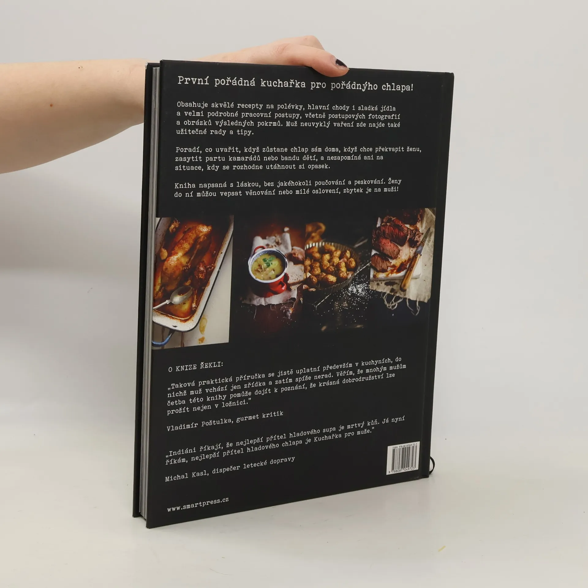 Kuchařka pro mého muže Veroniky Zemanové je první českou knihou pro normálního chlapa, kterému kuchyně doposud sloužila jako kulisa k lednici, v níž dřímalo jeho milované vychlazené pivo a jiné lahůdky. Jednoho dne se ale tento muž ocitne doma sám – nota bene sám s dětmi – a chce přežít, rád by svépomocí připravil party pro kamarády, samozřejmě s něčím k snědku, někdy by chtěl svou manželku, přítelkyni nebo jinou lásku překvapit dobrou večeří. Právě pro takového muže autorka knihu napsala – pro muže vařením nepolíbeného. Píše ji s láskou, nepoučuje, nepeskuje, vlastně ji píše pro vlastního manžela. Kniha je rozdělena do kapitol podle toho, k jaké příležitosti muž právě vaří (bude mu rádcem, ať už vaří pro sebe, rodinu, kamarády či dámskou návštěvu, ale najde v ní oporu i tehdy, pokud bude vařit polévku nebo se rozhodne zhubnout), a poslední z nich je věnována základním postupům, užitečným radám a rozmanitým úskalím, na které chlap neuvyklý vaření pravděpodobně dříve či později narazí. Kuchařka pro mého muže obsahuje velmi podrobné pracovní postupy včetně postupových fotografií a nechybí ani obrázky výsledných pokrmů. Knížka je tak kuchařkou, deníkem i zápisníkem v jednom. Jedná se o velmi interaktivní kuchařskou knihu v luxusním podání, s nadčasovou grafikou a skvělými fotografiemi.