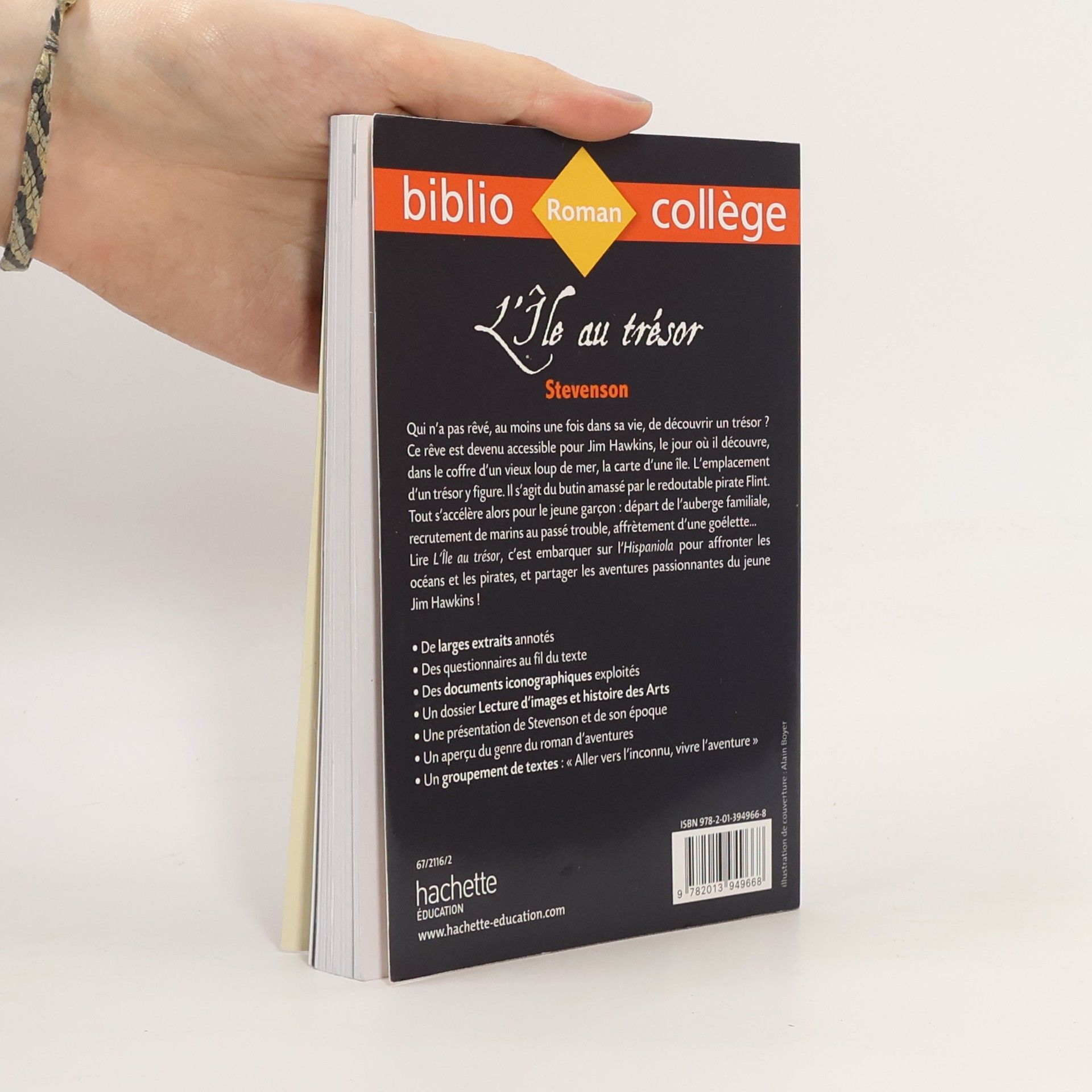 Qui n'a pas rêvé, au moins une fois dans sa vie, de découvrir un trésor ? Ce rêve est devenu accessible pour Jim Hawkins, le jour où il découvre, dans le coffre d'un vieux loup de mer, la carte d'une île. L'emplacement d'un trésor y figure. Il s'agit du butin amassé par le redoutable pirate Flint. Tout s'accélère alors pour le jeune garçon : départ de l'auberge familiale, recrutement de marins au passé trouble, affrètement d'une goélette... Lire L'Ile au trésor, c'est embarquer sur l'Hispaniola pour affronter les océans et les pirates, et partager les aventures passionnantes du jeune Jim Hawkins ! - De larges extraits annotés - Des questionnaires au fil du texte - Des documents iconographiques exploités - Un dossier Lecture d'images et histoire des Arts - Une présentation de Stevenson et de son époque - Un aperçu du genre du roman d'aventures - Un groupement de textes : "Aller vers l'inconnu, vivre l'aventure".