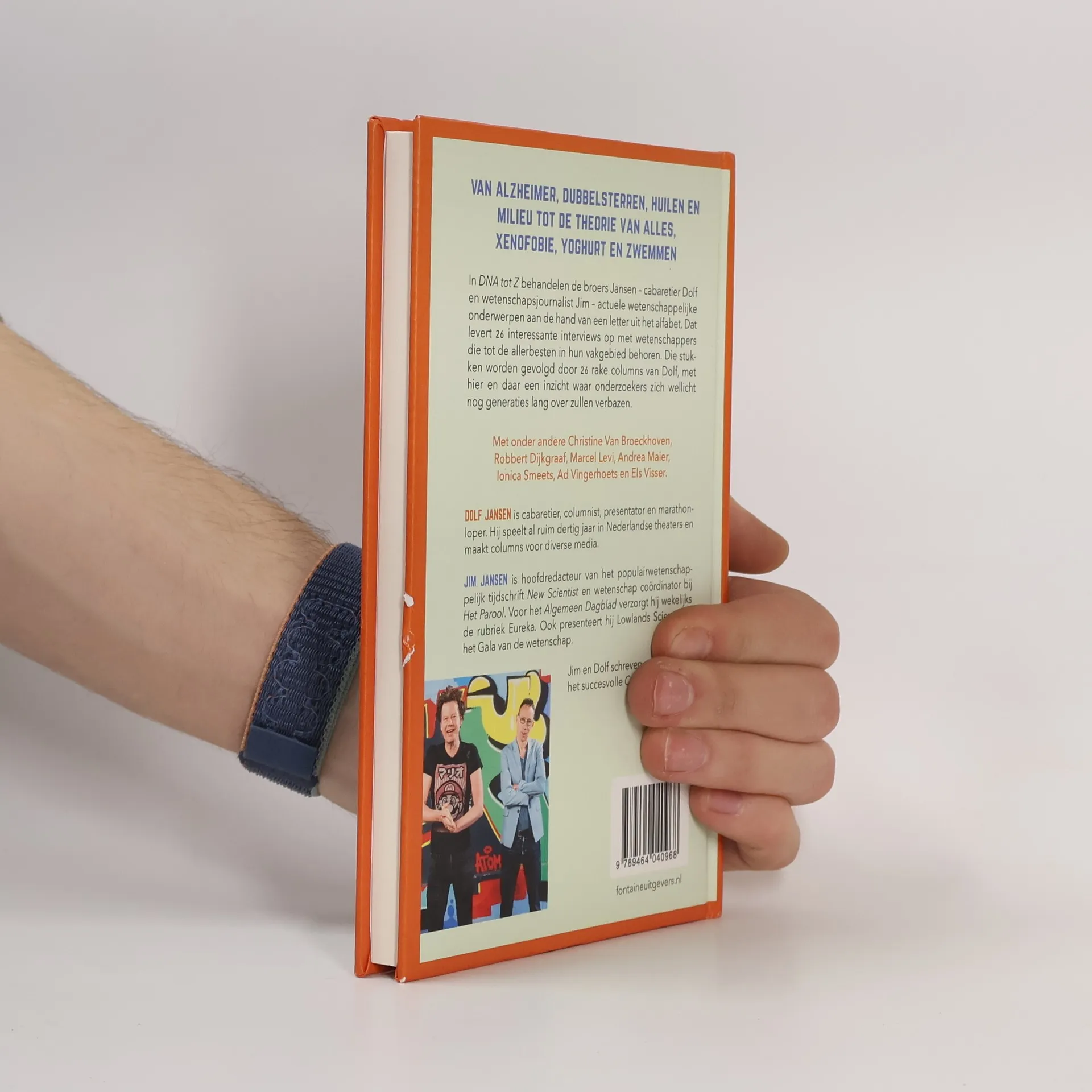 26 wetenschappers over de nieuwste inzichten en 26 columns van Dolf Jansen over ongeveer hetzelfdeDe nieuwste wetenschappelijke doorbraken met puntig commentaar van Dolf JansenVan Nobelprijswinnaars tot neutrino-onderzoekers. Van zombiecel-professor tot zwarte gaten specialist. In DNA tot Z komen zesentwintig wetenschappers aan het woord die tot de allerbesten in hun vakgebied behoren. Dat levert 26 interessante interviews van Jim Jansen op, gevolgd door 26 rake columns van zijn broer Dolf, met hier en daar een inzicht waar wetenschappers zich wellicht nog generaties lang over zullen verbazen.* met bijdragen van o.m. Robbert Dijkgraaf, Marcel Levi, Ad Vingerhoets, Ionica Smeets, Andrea Maier en Ivo van Vulpen* over Antarctica, dubbelsterren en wegwee, de theorie van alles, xenofobie, bevallen in het ziekenhuis plus nog 20 andere actuele onderwerpenNa CoronA tot Z, hun bestseller in ABC-vorm, zijn de broers Jansen – cabaretier Dolf en wetenschapsjournalist Jim – terug met dit nieuwe boek. Hierin behandelen wetenschappers wederom recente ontdekkingen aan de hand van een letter uit het alfabet. Dolf, zelf zeker geen toponderzoeker, reageert op geheel eigen wijze op deze gewaarwordingen.