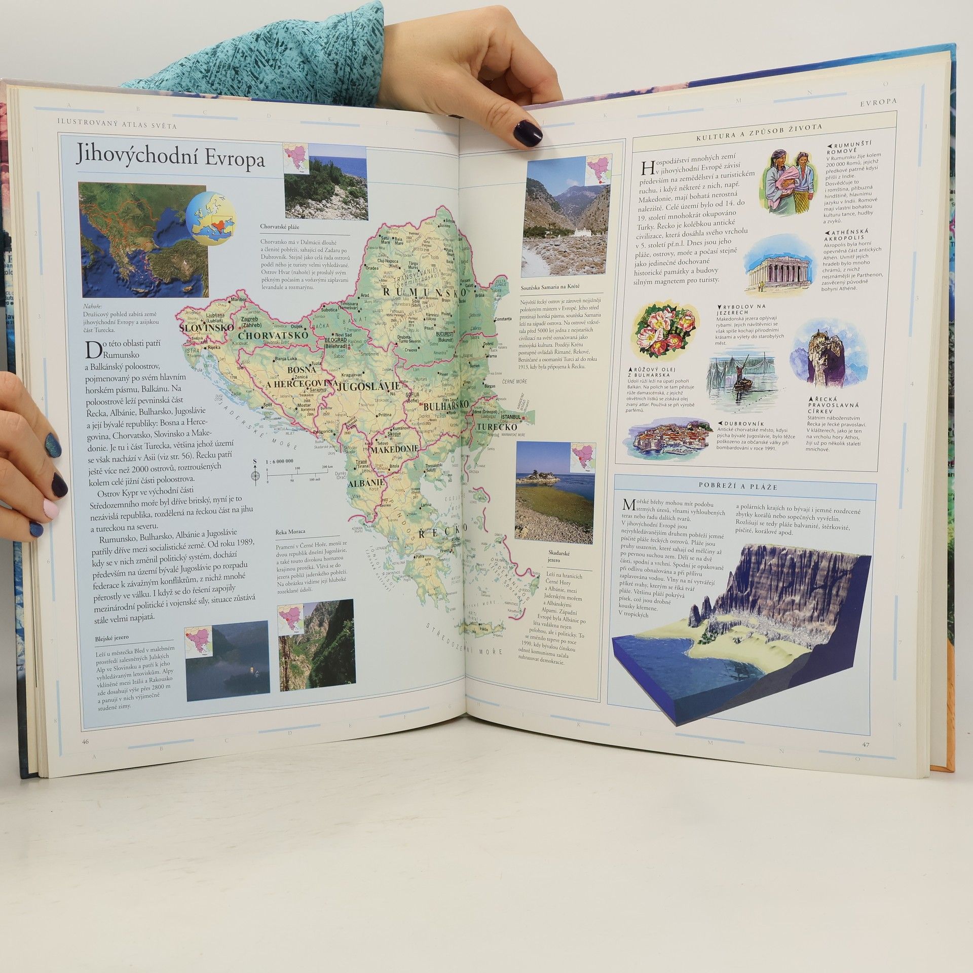 Vedle fyzických map obsahuje řadu informací z hospodářského a politického zeměpisu. Data a fakta jsou bohatě doplněna barevnými ilustracemi, fotografiemi i satelitními snímky.