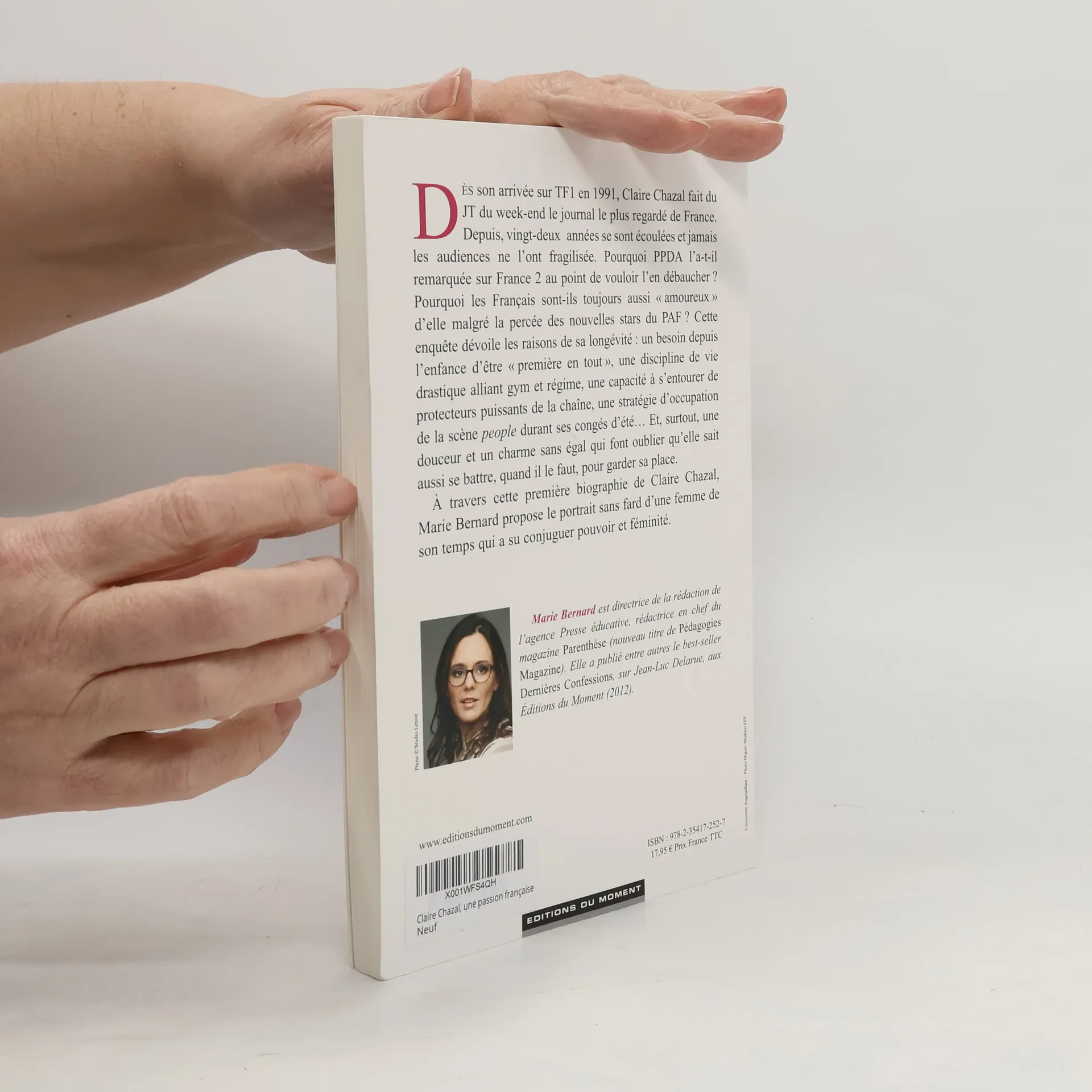 DES son arrivée sur TF1 en 1991, Claire Chazal fait du JT du week-end le journal le plus regardé de France. Depuis, vingt-deux années se sont écoulées et jamais les audiences ne l'ont fragilisée. Pourquoi PPDA l'a-t-il remarquée sur France 2 au point de vouloir l'en débaucher ? Pourquoi les Français sont-ils toujours aussi " amoureux " d'elle malgré la percée des nouvelles stars du PAF ? Cette enquête dévoile les raisons de sa longévité : un besoin depuis l'enfance d'être "première en tout ", une discipline de vie drastique alliant gym et régime, une capacité à s'entourer de protecteurs puissants de la chaîne, une stratégie d'occupation de la scène people durant ses congés d'été... Et, surtout, une douceur et un charme sans égal qui font oublier qu'elle sait aussi se battre, quand il le faut, pour garder sa place. A travers cette première biographie de Claire Chazal, Marie Bernard propose le portrait sans fard d'une femme de son temps qui a su conjuguer pouvoir et féminité.