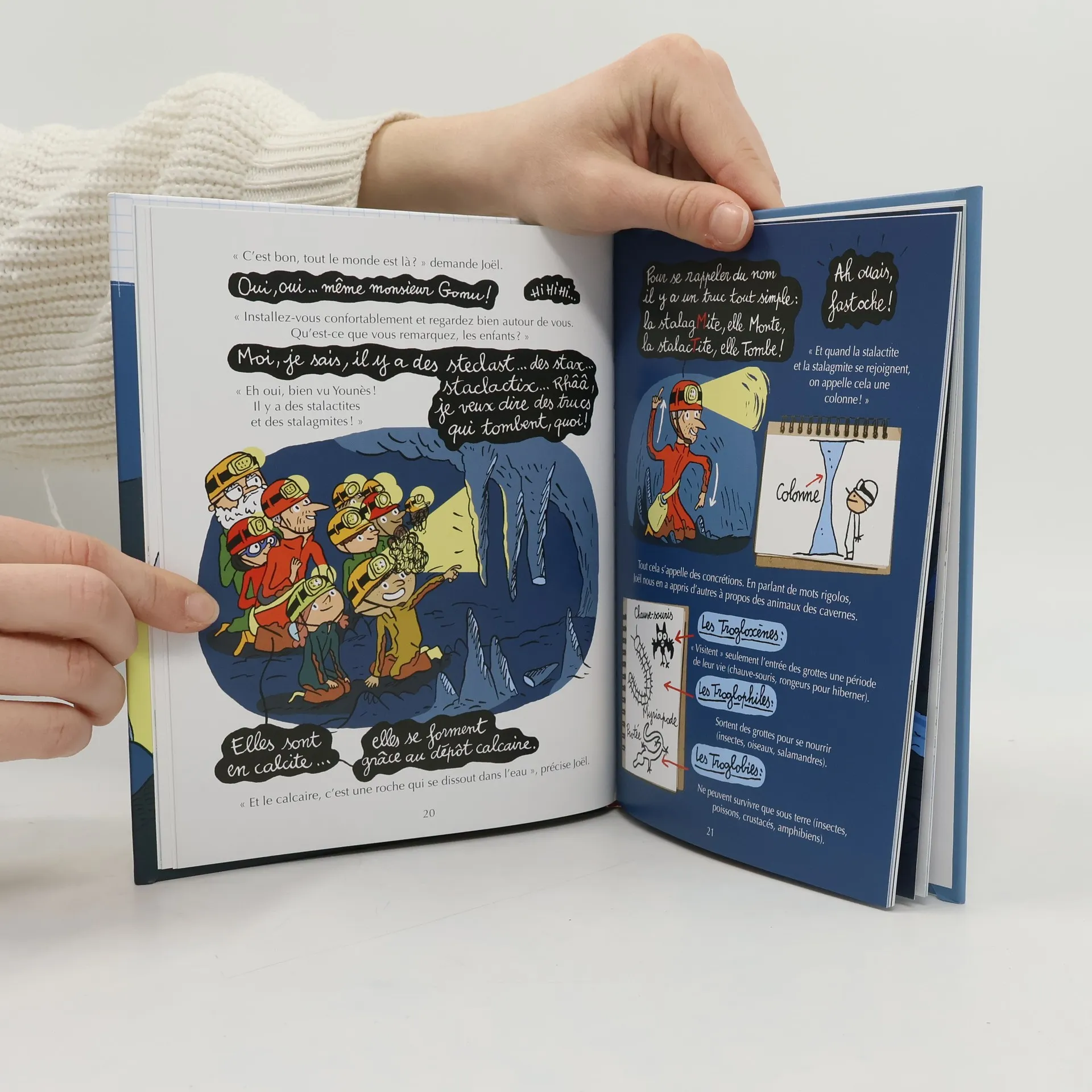 Aujourd'hui, avec mon école, nous partons en "classe spéléo"! Ca veut dire que nous allons visiter des grottes dans le noir et peut-être voir des chauves-souris... Wooohh ! Monsieur Gomu, notre directeur, a un peu les pétoches de ne pas arriver à ressortir, mais, nous on a hâte d'explorer le monde souterrain !