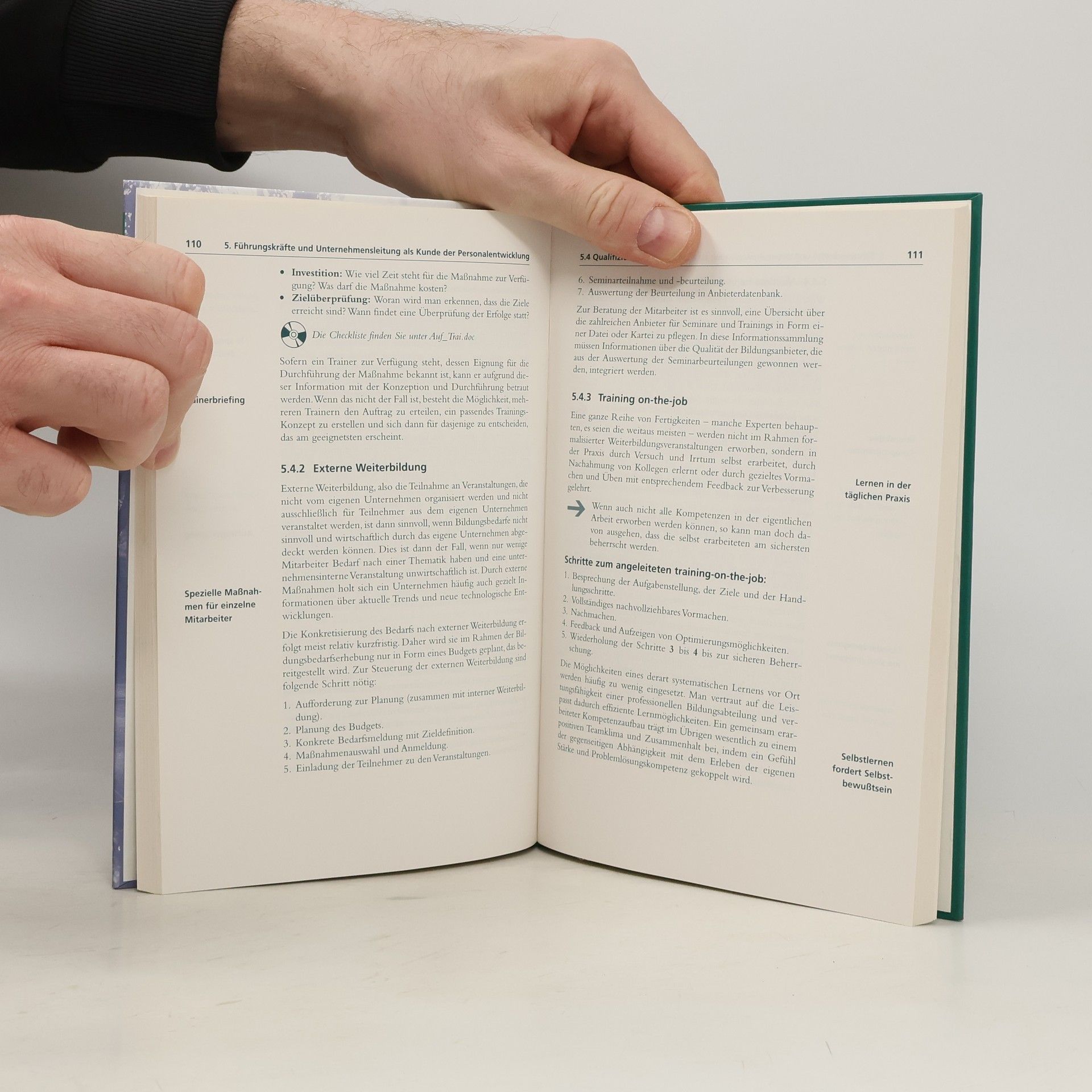 Die systematische Personalentwicklung ist in einem modernen Unternehmen von grundlegender Bedeutung für den geschäftlichen Erfolg. Mitarbeiter müssen dazu gebracht werden, sich engagiert, eigenverantwortlich und kreativ für das Unternehmen einzusetzen. Wie muss also eine zukunftsgerichtete Personalabteilung organisiert sein? Welche Massnahmen muss sie ergreifen, um das Unternehmen voranzubringen? Das Buch liefert leicht verständliche Antworten auf diese Fragen. Ob es um Anwerbung und Einarbeitung neuer Mitarbeiter geht, um Training "on the job", Karrierewege für High Potentials oder das Verhalten von Führungskräften - die Autoren bieten konkrete und praktisch umsetzbare Tipps und Anleitungen. Zahlreiche Tabellen, Checklisten und Formulare sowie die beigefügte CD-ROM erhöhen den praktischen Nutzwert - wenn es auch mit der Innovation leider nicht so weit her ist, wie der Titel verspricht. getAbstract empfiehlt dieses Buch allen Führungskräften, die mehr über effiziente Personalschulung und Weiterbildung erfahren und die gewonnenen Erkenntnisse in ihrem eigenen Unternehmen unmittelbar anwenden wollen