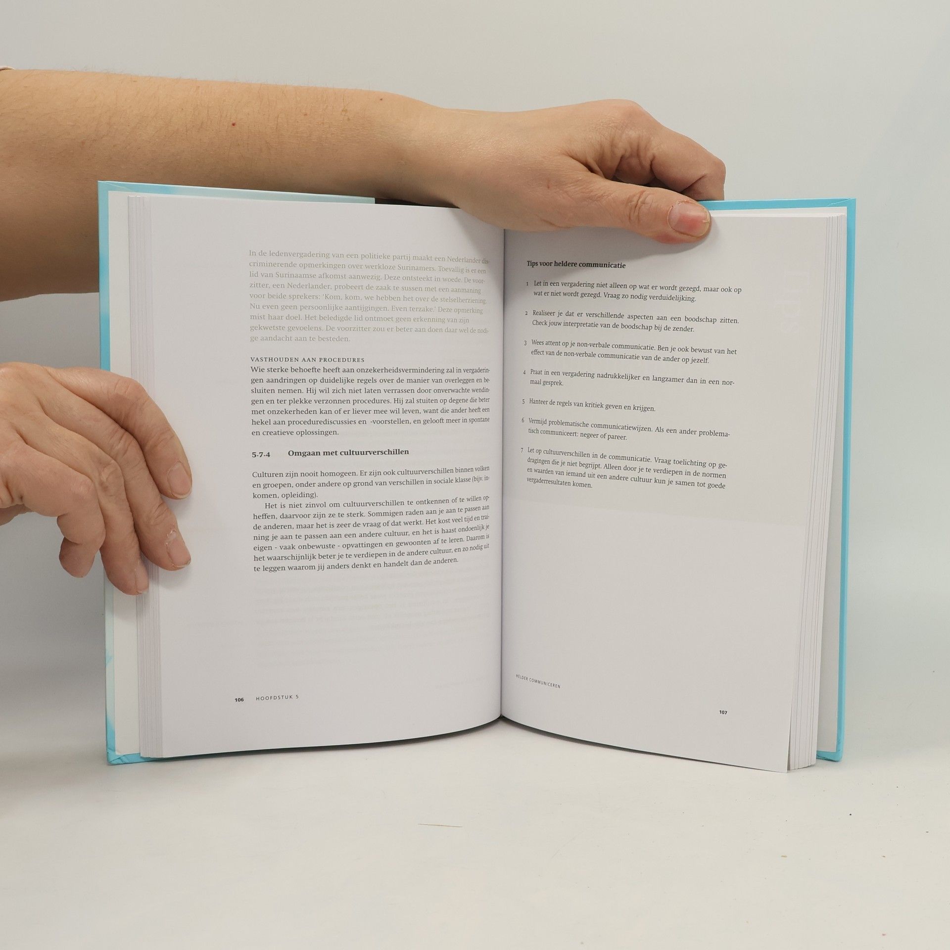 Vergaderen en onderhandelen biedt een stevige basis voor iedereen die zijn vaardigheden in deze gebieden wil verbeteren. Het boek biedt inzicht in wat er in overlegsituaties kan gebeuren, met verduidelijkende voorbeelden van de theorie. Door middel van oefeningen kan de lezer zich trainen in vaardigheden zoals communiceren, argumenteren, onderhandelen, stemmen, voorzitten en notuleren. De auteurs benadrukken dat overleg vaak gepaard gaat met inhoudelijke en persoonlijke tegenstellingen tussen deelnemers. In dergelijke situaties zijn goede vergader- en onderhandeltechnieken essentieel voor gezamenlijke besluiten. Het boek maakt een duidelijk onderscheid tussen twee typen vergaderingen: teamvergaderingen, waarin werkzaamheden worden gepland en uitgevoerd om concrete doelen te bereiken, en bestuursvergaderingen, waar besluitvorming centraal staat. Onderhandelen is een vaardigheid die in diverse situaties nodig is, niet alleen in formele onderhandelingscontexten. Het is een integraal onderdeel van het dagelijks leven, zowel in vergaderingen en organisaties als daarbuiten, tussen individuen en groepen die elkaar nodig hebben om hun doelen te bereiken. Dit aspect is daarom een belangrijk onderdeel van het boek.