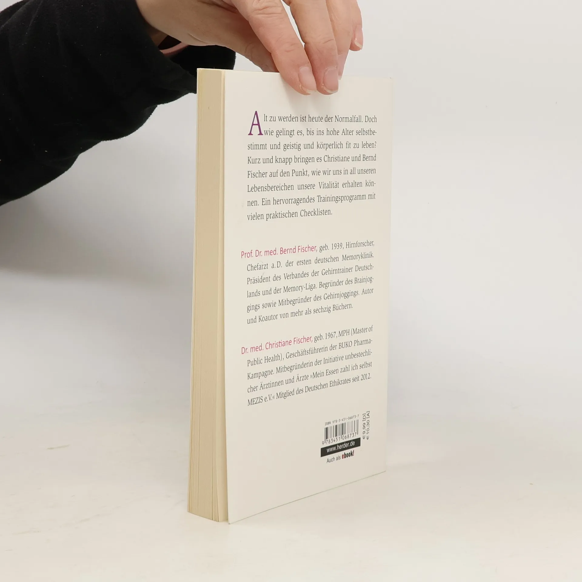 Bernd Fischer, Prof. Dr. med., geboren 1939, Hirnforscher, Chefarzt a. D. der ersten deutschen Memoryklinik. Präsident des Verbandes der Gehirntrainer Deutschlands und der Memory-Liga. Begründer des Brainjoggings sowie Mitbegründer des Gehirnjoggings, von der Presse Gehirnjogging-Papst genannt. Träger des Hirt-Preises 1993 im Bereich soziales Engagement zusammen mit Hans Küng, Marion Gräfin Dönhoff und Karl-Heinz Böhm. Autor und Koautor von mehr als 60 Büchern. Christiane Fischer, Dr. med., geboren 1967, Geschäftsführerin der BUKO Pharma-Kampagne (Schwerpunkte: Rationaler Umgang mit Medikamenten, Evidence Based Medicine, Zugang zu unentbehrlichen Medikamenten für Menschen aus Afrika, Lateinamerika und Asien). Internationaler Abschluss für öffentliche Gesundheit (Master of Public Health) an der London School of Hygiene and Tropical Medicine. Mitbegründerin der Initiative unbestechlicher Ärztinnen und Ärzte »Mein Essen zahl ich selbst« MEZIS e. V., Mitglied des Deutschen Ethikrates seit 2012.