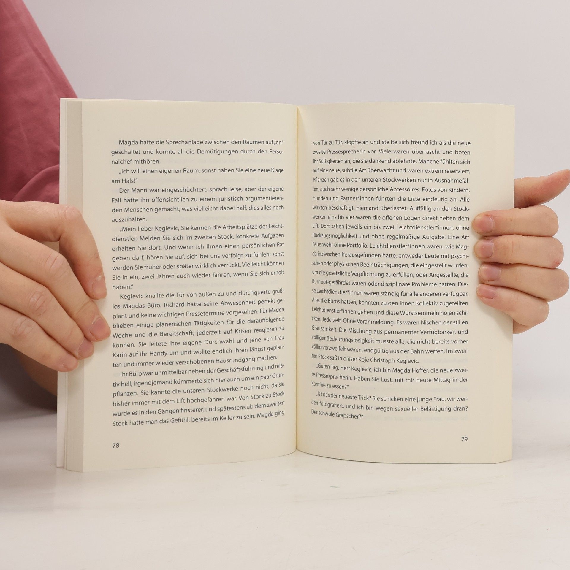 Nachdem Magda Hoffer ihren Job in einem Callcenter gekündigt hat, versucht ihr Vater, sie bei der Stadtverwaltung unterzubringen. Einen eingeforderten Gefallen und ein neues Kostüm später sitzt Magda also bei einem Vorstellungsgespräch mit dem Leiter der Öffentlichkeitsarbeit des städtischen Verkehrsbetriebs. Dort ist gerade einiges zu tun. Ein Mitarbeiter, Christoph Keglevic, hat nach jahrelangem Mobbing aufgrund seiner Homosexualität eine Klage eingereicht und als Magda zufällig erfährt, dass nun versucht werden soll, ihn mit übelsten Mitteln aus dem Job zu drängen, beschließt sie, Keglevic zu helfen. In seinen neuen Roman webt Kurto Wendt seine journalistischen Recherchen zu einem realen Mobbing-Fall ein und erzählt auf wunderbar mühelose Weise die fiktive Geschichte rund um einen Kreis von Freund_innen in Wien. Gekonnt lässt Wendt sein umfangreiches Wissen über politische Strukturen in seine erzählerische Leichtigkeit einfließen und beweist aufs Neue, dass Gesellschaftskritik und Unterhaltungsliteratur einander bestens verstehen.