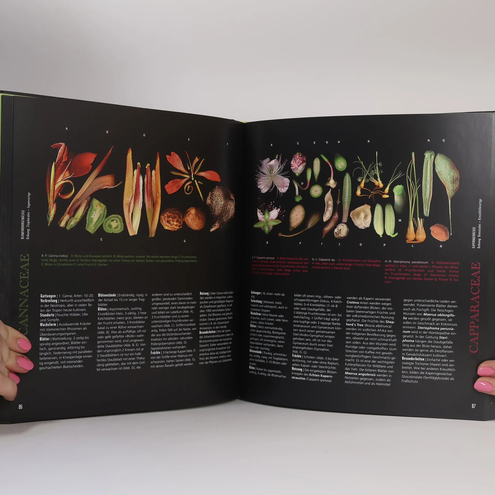 Einmalige Darstellung der Blütenpflanzen der Welt: 200 botanische Familien im Porträt. Tausende von Pflanzen aus dem Loki-Schmidt-Garten, Hamburg. Bildband, Nachschlagewerk und Geschenkbuch für Pflanzenfreunde. Eine schier unglaubliche Vielfalt an Formen und Farben hat die Natur bei den Blütenpflanzen hervorgebracht. Der offensichtlichen Farbenpracht bei den Blüten steht die Vielfalt an Blatt- und Fruchtformen in nichts nach. 200 Blütenfamilien der ganzen Welt werden in diesem prächtigen Bildband porträtiert. Die Pflanzenteile wurden einzeln eingescannt und nebeneinander angeordnet. Die Bildtafeln erlauben einen einmaligen Einblick in die Welt der Blütenpflanzen. Auf dem schwarzen Hintergrund leuchten Blüten, Blätter, Staubgefäße und Früchte um die Wette, und bei vielen Arten zeigen Querschnitte durch die Organe, wie die Pflanzen im Innern aussehen. Knappe Übersichtstexte zu den Familien ergänzen die Bilderpracht. Ausgezeichnet beim Deutschen Gartenbuchpreis 2018 – Bester Bildband