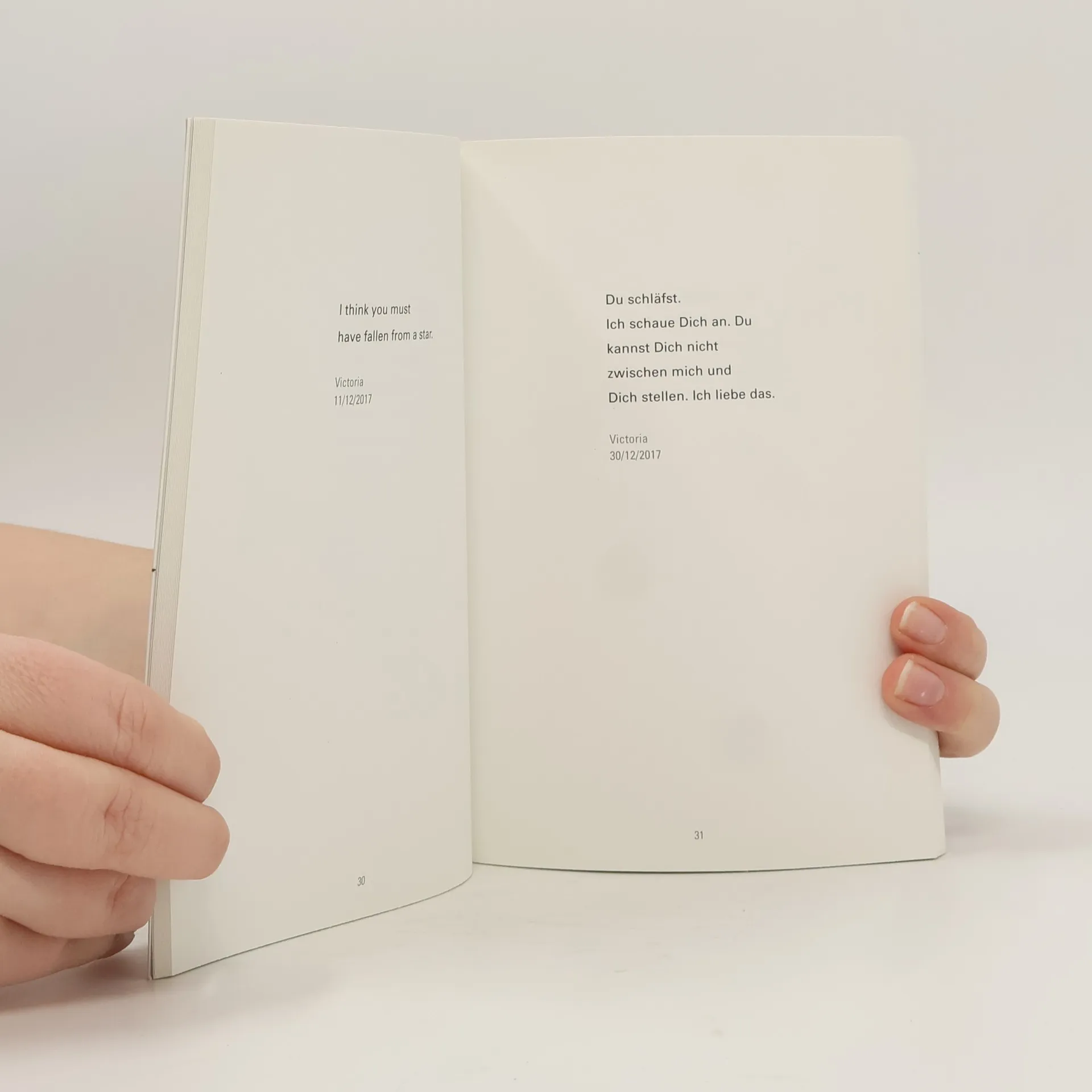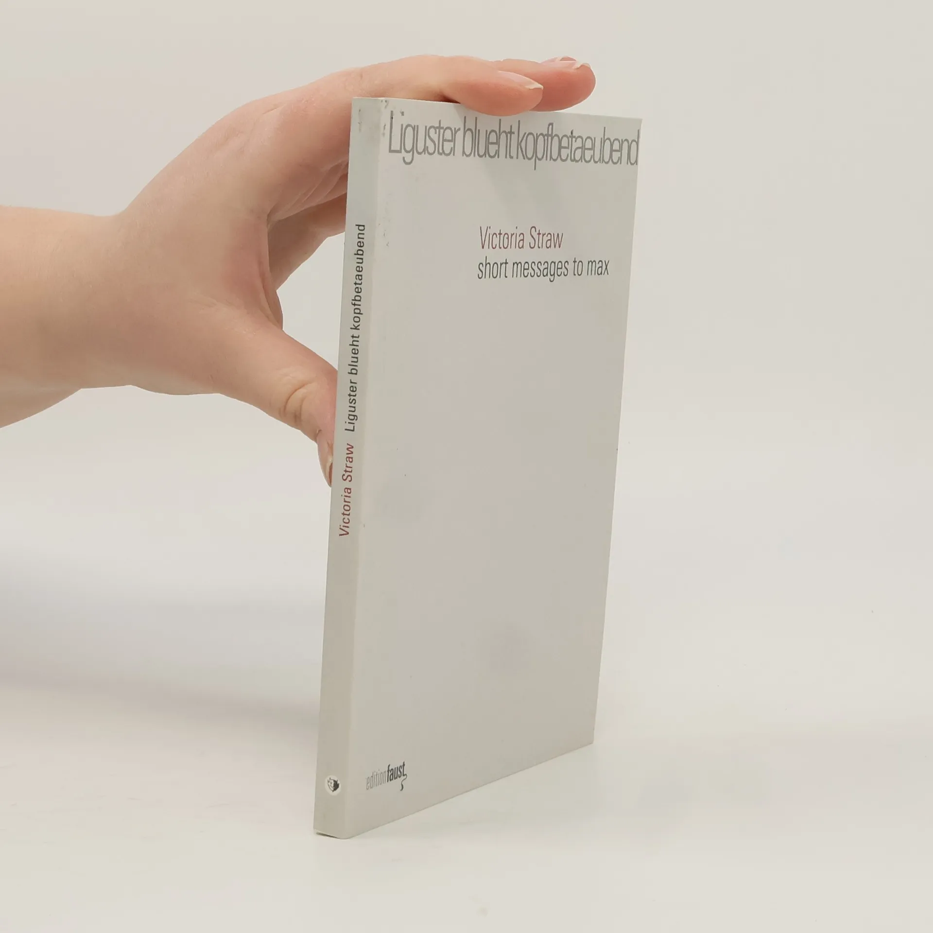 Victoria Straw hat ihre Texte nicht für die Öffentlichkeit geschrieben. Es handelt sich dabei um Mitteilungen an ihren Mann Max, um short messages (sms), die sie in ihr altes Mobiltelefon tippte. Allein die berückenden Sprachbilder, die sie für den Himmel mit seinen Gestirnen oder die dunklen Bäume mit ihren Eulen fand, – all das verlangt dennoch danach, mit anderen Leserinnen und Lesern geteilt zu werden. Eine Frau fluestert Sie moechte verstanden aber nicht gehoert werden