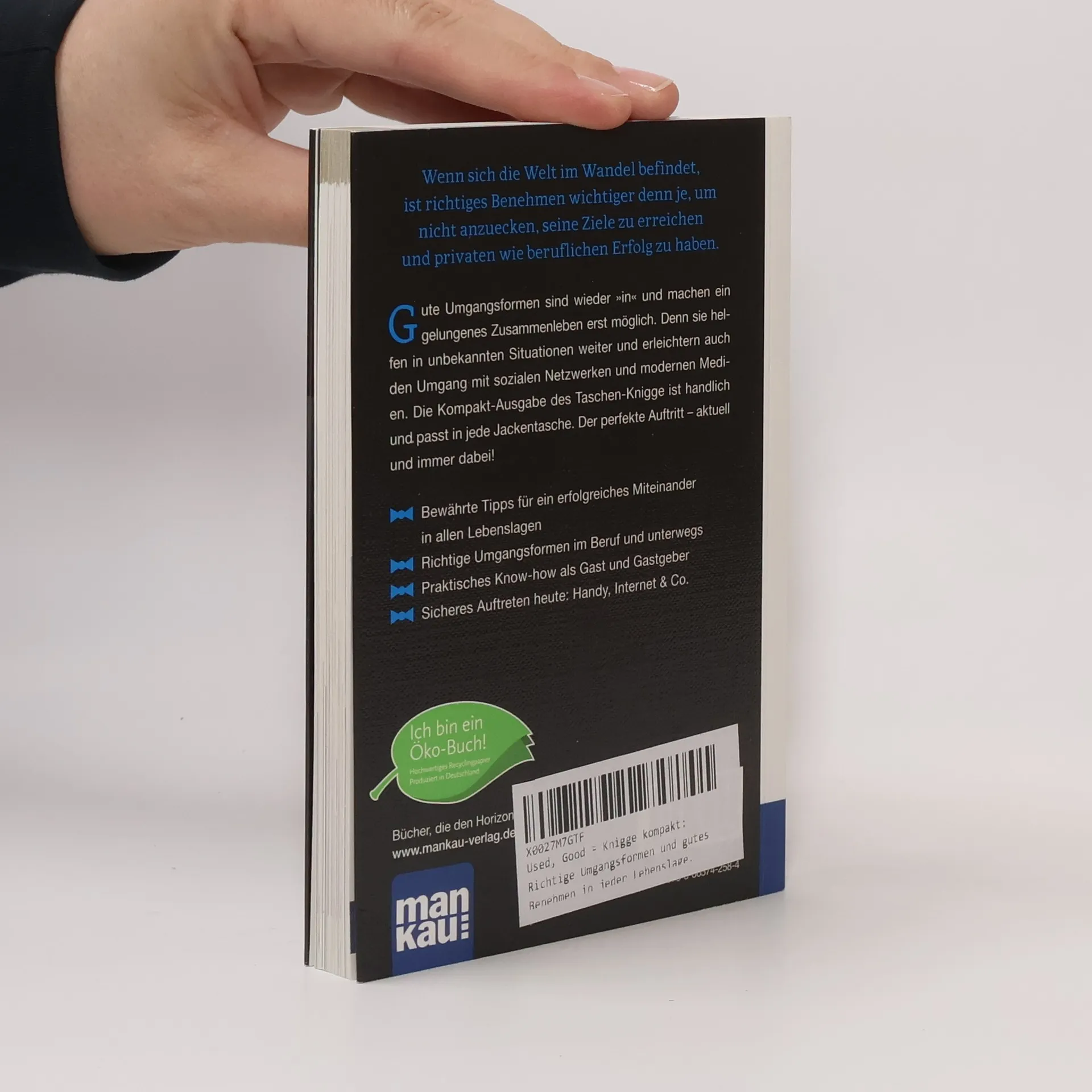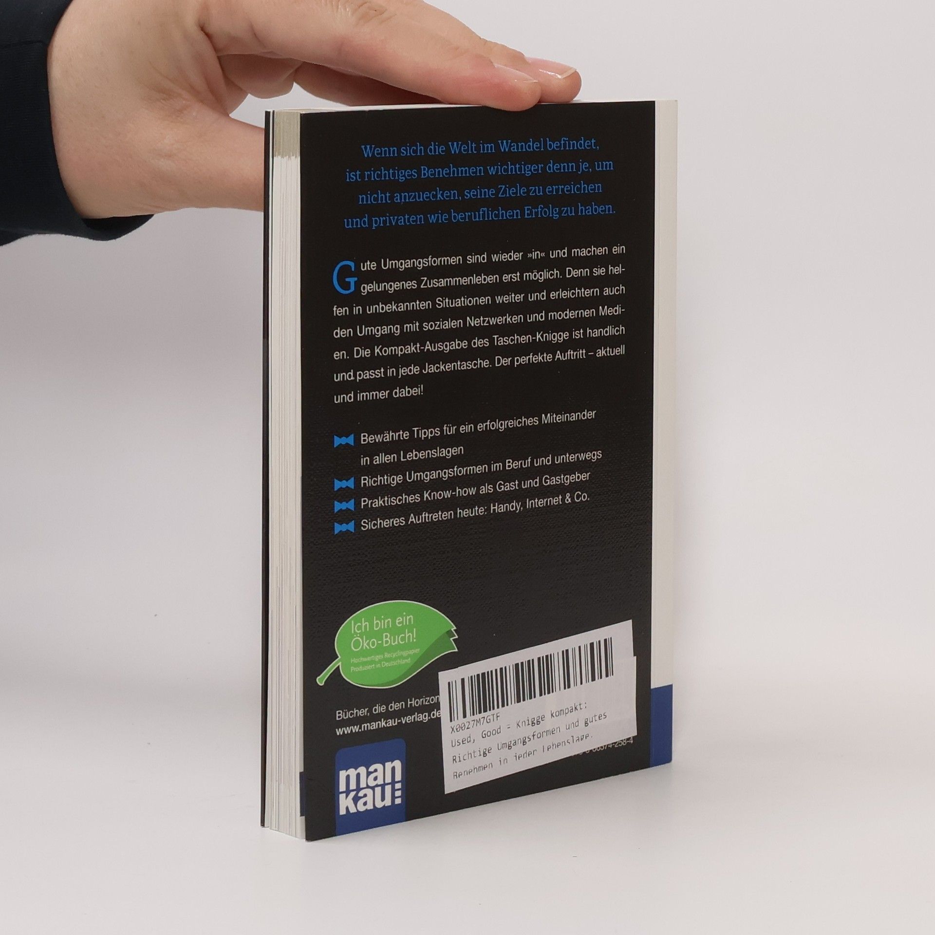 Wenn sich die Welt im Wandel befindet, ist richtiges Benehmen wichtiger denn je, um nicht anzuecken, seine Ziele zu erreichen und privaten wie beruflichen Erfolg zu haben. Gute Umgangsformen sind wieder „in“ und machen ein gelungenes Zusammenleben erst möglich. Denn sie helfen in unbekannten Situationen weiter und erleichtern auch den Umgang mit sozialen Netzwerken und modernen Medien. Die Kompakt-Ausgabe des Taschen-Knigge ist handlich und passt in jede Jackentasche. Der perfekte Auftritt – aktuell und immer dabei! - Bewährte Tipps für ein erfolgreiches Miteinander in allen Lebenslagen - Richtige Umgangsformen im Beruf und unterwegs - Praktisches Know-how als Gast und Gastgeber - Sicheres Auftreten heute: Handy, Internet & Co.