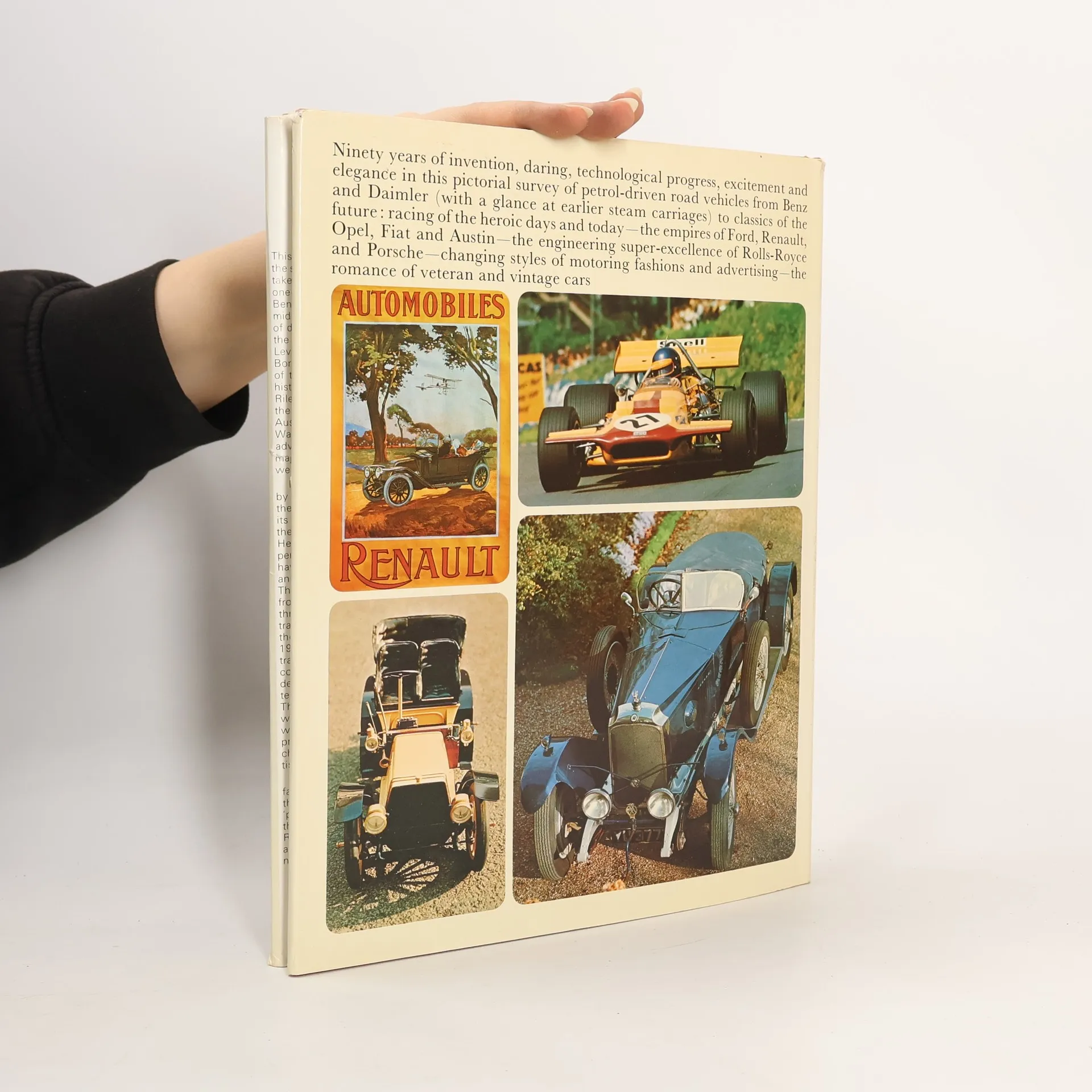 Hard cover book and dust jacket oversize 11" by 8-1/2". "Ninety years of motoring progress in 200 illustrations and 40 full-colour pictures."