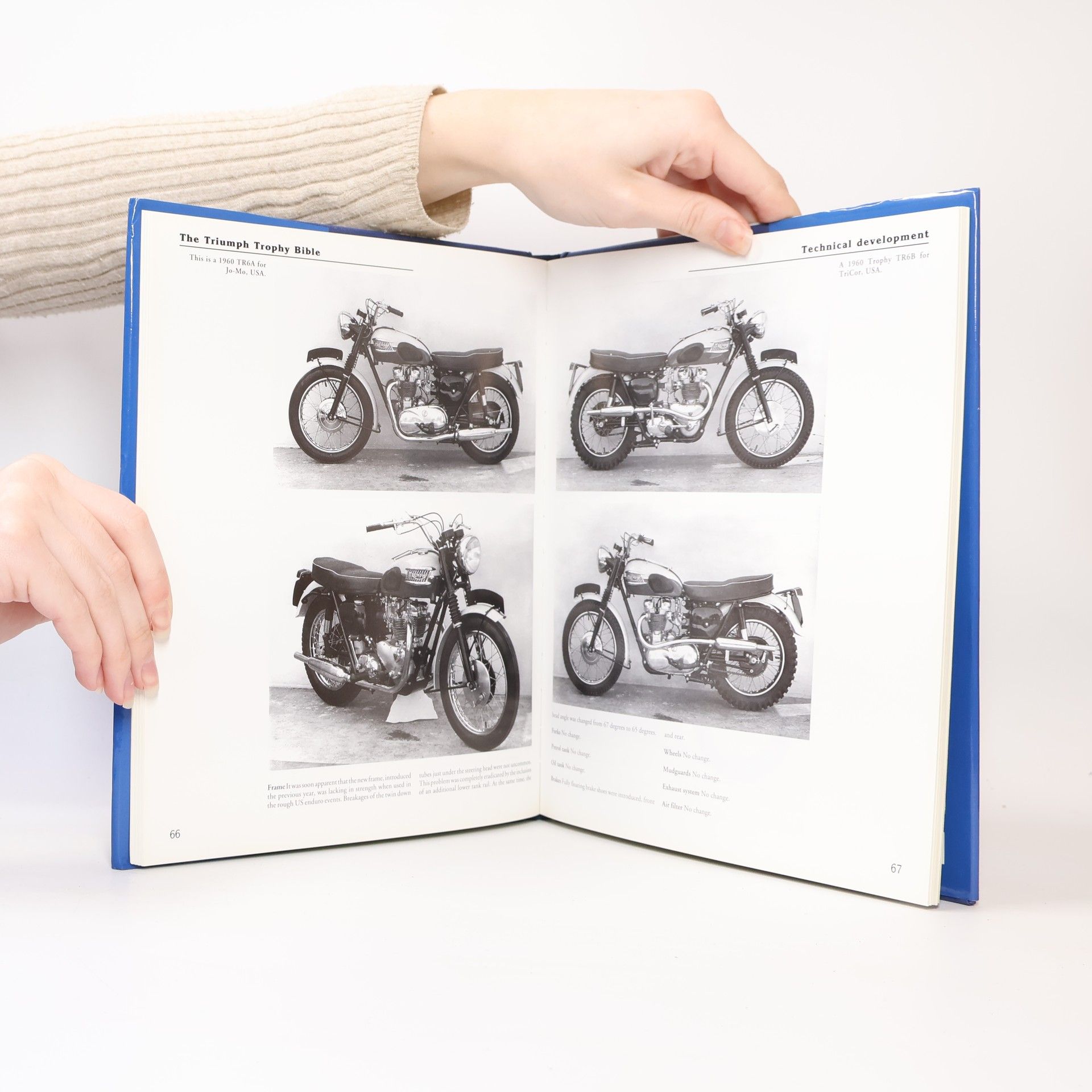 Complete year-by-year history of the Trophy & Tiger twins from 1949 to 1983. Includes original factory model photos, technical specifications, color schemes, engine & frame numbers, model type identification and details of Trophy & Tiger achievements.