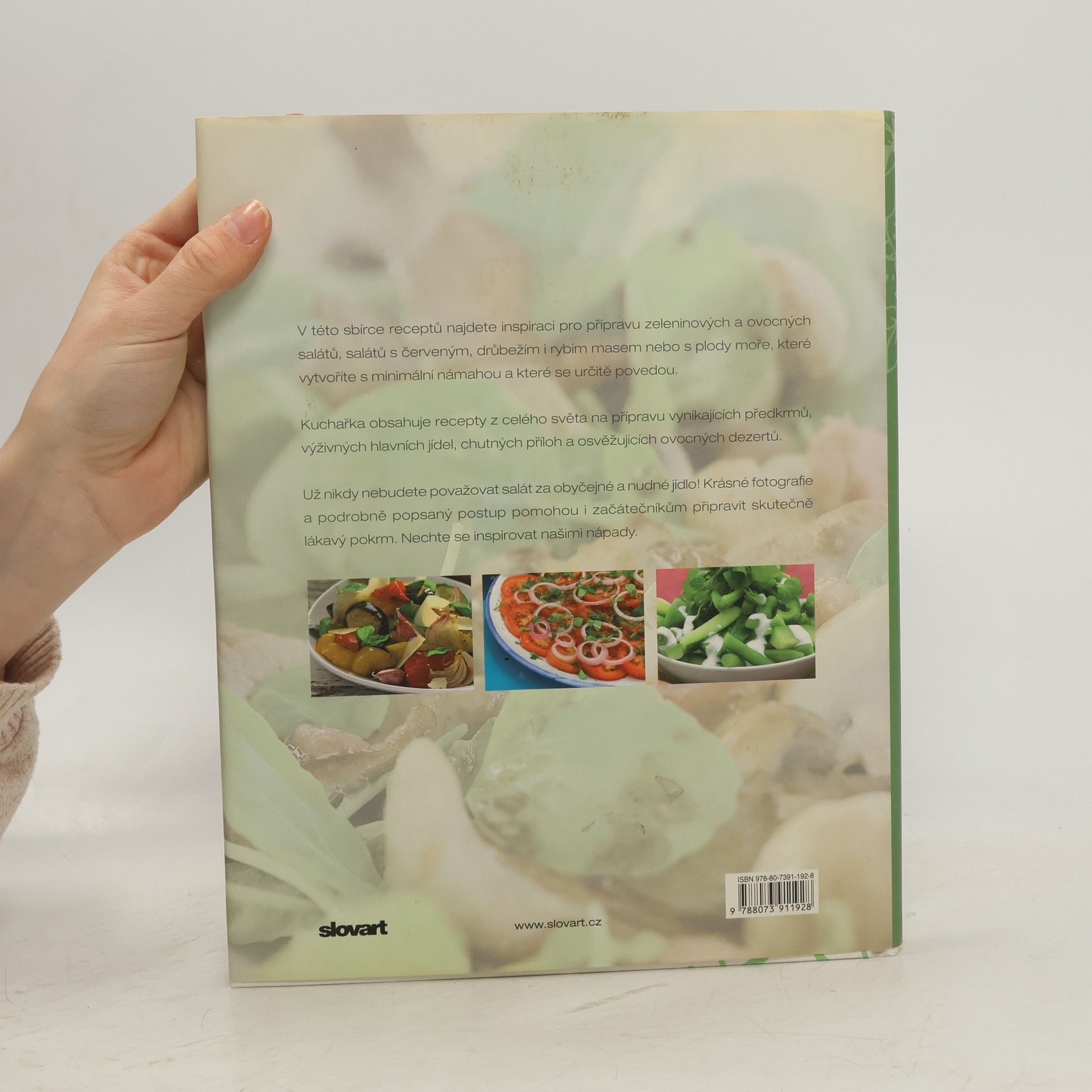 Recepty z celého světa obsahují spoustu nápadů na přípravu zeleninových a ovocných salátů, salátů s drůbežím i rybím masem nebo s plody moře. Můžete je podávat jako hlavní jídlo, předkrm, přílohu nebo osvěžující dezert. Určitě tu najdete salát vhodný pro jakoukoli příležitost - od lehkého oběda po stylový večírek. Krásné fotografie a podrobný postup pomohou i začátečníkům připravit skutečně lákavé saláty, například klasický salát César, kuřecí salát v thajském stylu, paprikový salát s kozím sýrem, těstovinový salát s rostbífem, kuřecí salát se sýrem a roketou, fazolový salát s tuňákem, neapolský salát s plody moře či melounový salát s mangem. Jednodušeji - a příjemněji - to už snad ani nejde!