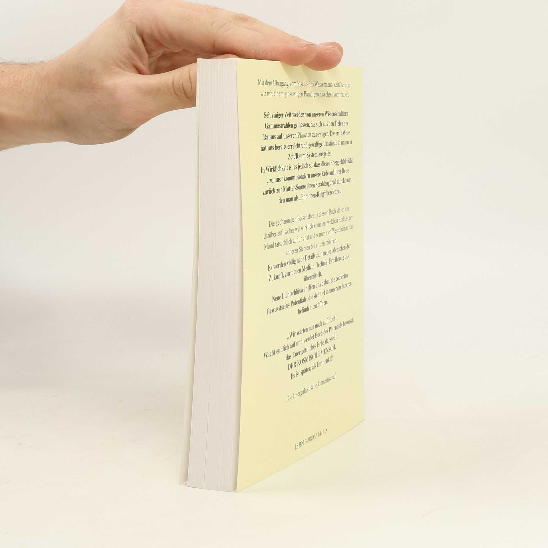 Mit dem Übergang vom Fische- ins Wassermann-Zeitalter sind wir mit einem grossartigen Paradigmenwechsel konfrontiert: Seit einiger Zeit werden von unseren Wissenschaftlern Gamma- strahlen gemessen, die sich aus den Tiefen des Raums auf unseren Planeten zubewegen. Die erste Welle hat uns bereits erreicht und gewaltige Umstürze in unserem Raum/Zeit-System ausgelöst. In Wirklichkeit ist es jedoch so, dass dieses Energiefeld nicht „zu uns“ kommt, sondern unsere Erde auf ihrer Reise zurück zur Mutter-sonne einen Strahlengürtel durchquert, den man als „Photonenring“ bezeichnet. Das Buch enthält farbige Bilder und visuelle Lichtschlüssel, welche die codierten Bewusst-seinspotentiale, die sich tief in unserem Inneren befinden, öffnen helfen.