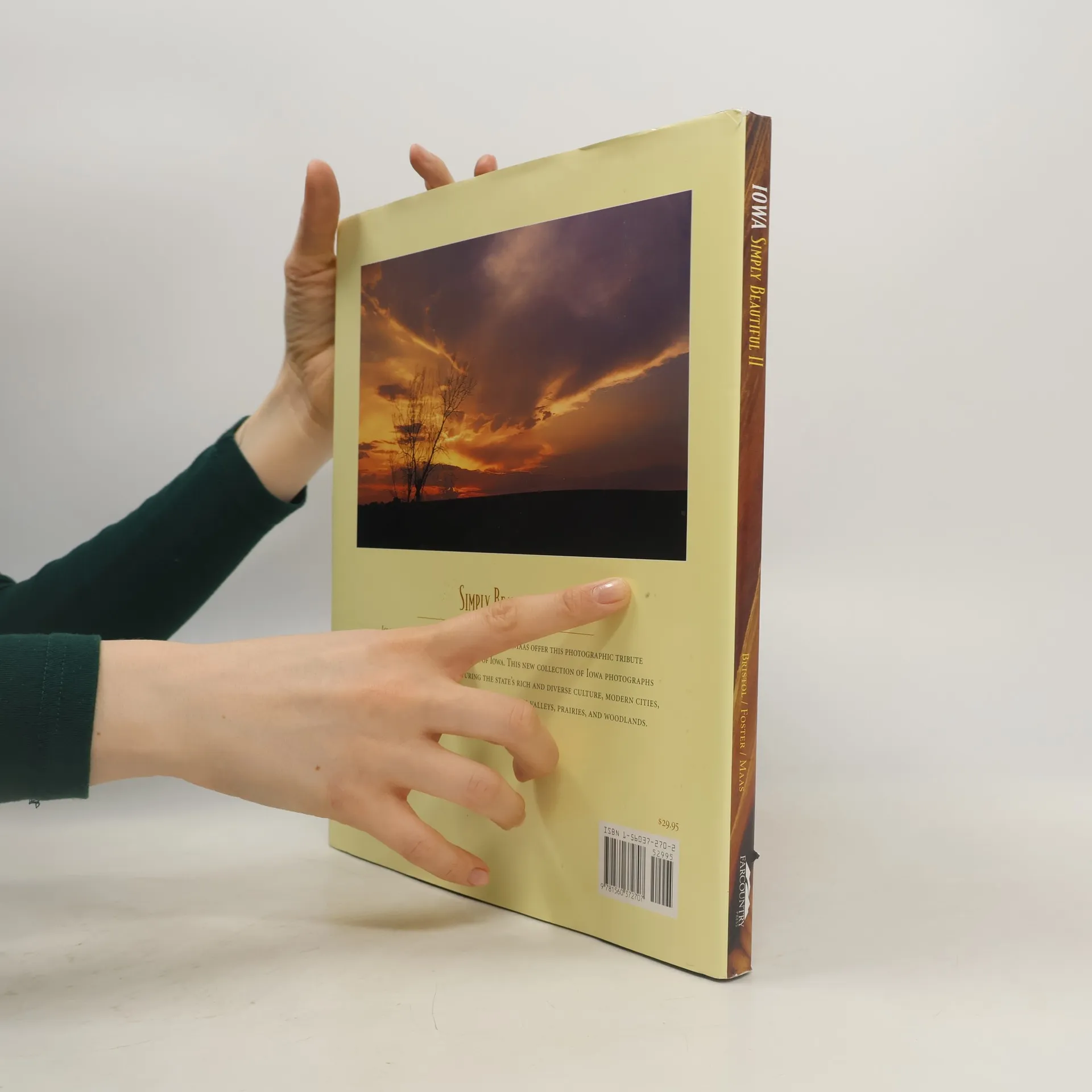 Come home to Iowa once again with this second collection of photographs from Bristol and Maas, this time joined by Kent Foster. These are scenes of hard work and hard play in a land with four strong seasons; images of past history and cultures; and the natural beauty of all the Iowa landscapes between the Mississippi and the Missouri. If Iowa is home, you will find a family album here. If not, you will know from these photographs that visitors are always welcome in Iowa.