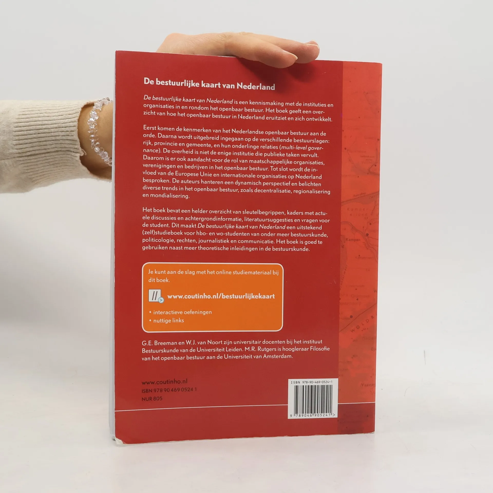 De bestuurlijke kaart van Nederland is een eerste kennismaking met de instituties en organisaties in en rondom het openbaar bestuur. Het boek schetst de inrichting van het openbaar bestuur op de verschillende niveaus. Deze zogenoemde kaartkennis gaat vooraf aan meer theoretische beschouwingen over het openbaar bestuur. Vertrekpunt van dit boek zijn de bestuurlijke instituties op nationaal niveau, gevolgd door een bespreking van het binnenlands bestuur en de internationale instituties waarbinnen het Nederlandse openbaar bestuur functioneert. Hierbij wordt een brede opvatting over het openbaar bestuur gehanteerd. Naast de staatsinstellingen komen daarom ook de niet-gouvernementele instellingen en organisaties die bepalend zijn voor het functioneren van het openbaar bestuur aan de orde. Het boek bevat een helder overzicht van sleutelbegrippen, kaders met actuele discussies en achtergrondinformatie, en vragen voor de student.