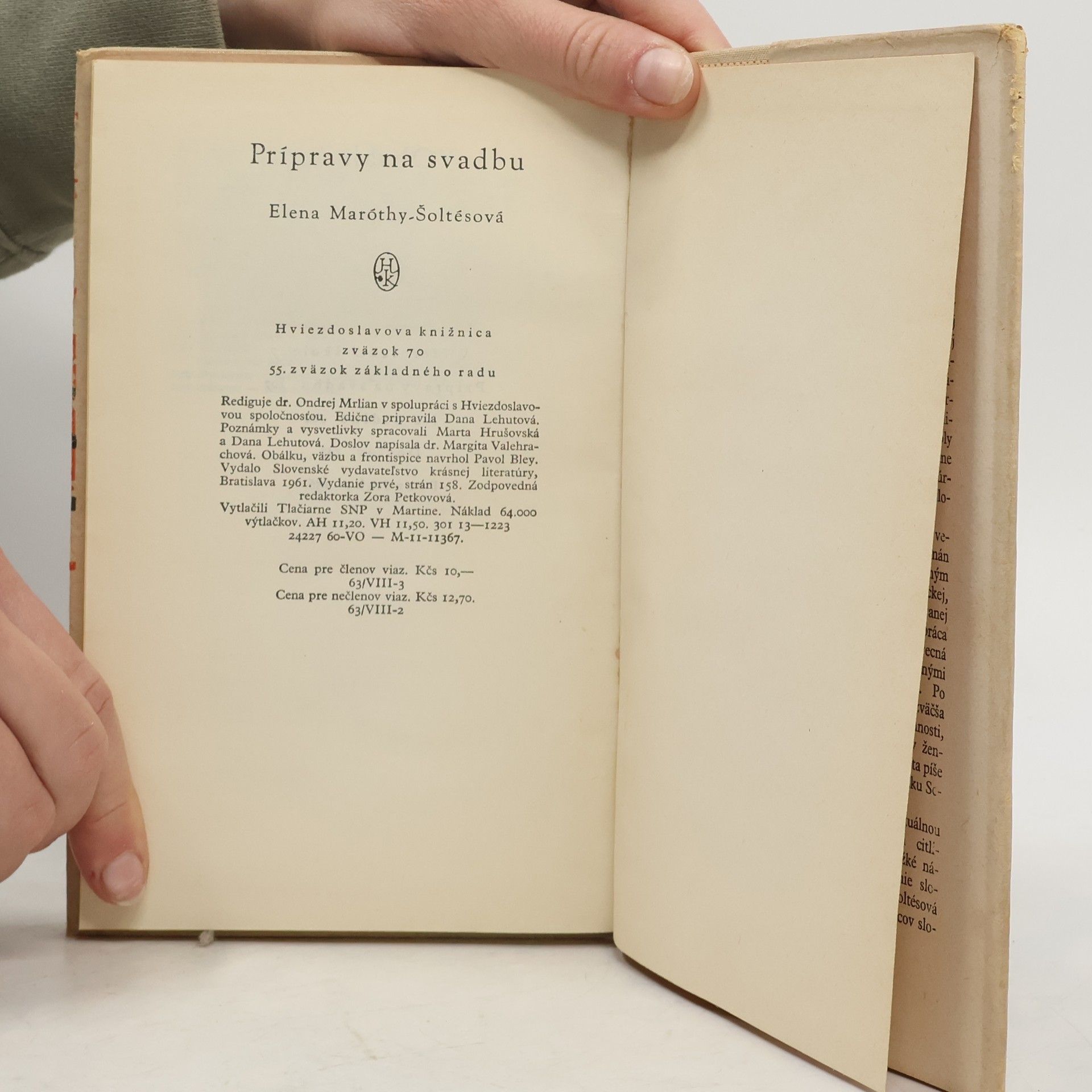 Nevydávaj sa ty, dievča, ešte, / Lepšie je dievčatku než neveste, / Dievčatko si chodí po slobode, / Ako tá rybička v bystrej vode. Klasika zo Zlatého fondu SME. Digitalizovaná podoba publikace: Elena Maróthy-Šoltésová. Prípravy na svadbu. Slovenské vydavateľstvo krásnej literatúry. Bratislava 1961. 158 s. Zora Petkovová, zodpovedná redaktorka. Dr. Ondrej Mrlian rediguje. Dana Lehutová edične pripravila. Marta Hrušovská spracovala poznámky a vysvetlivky.