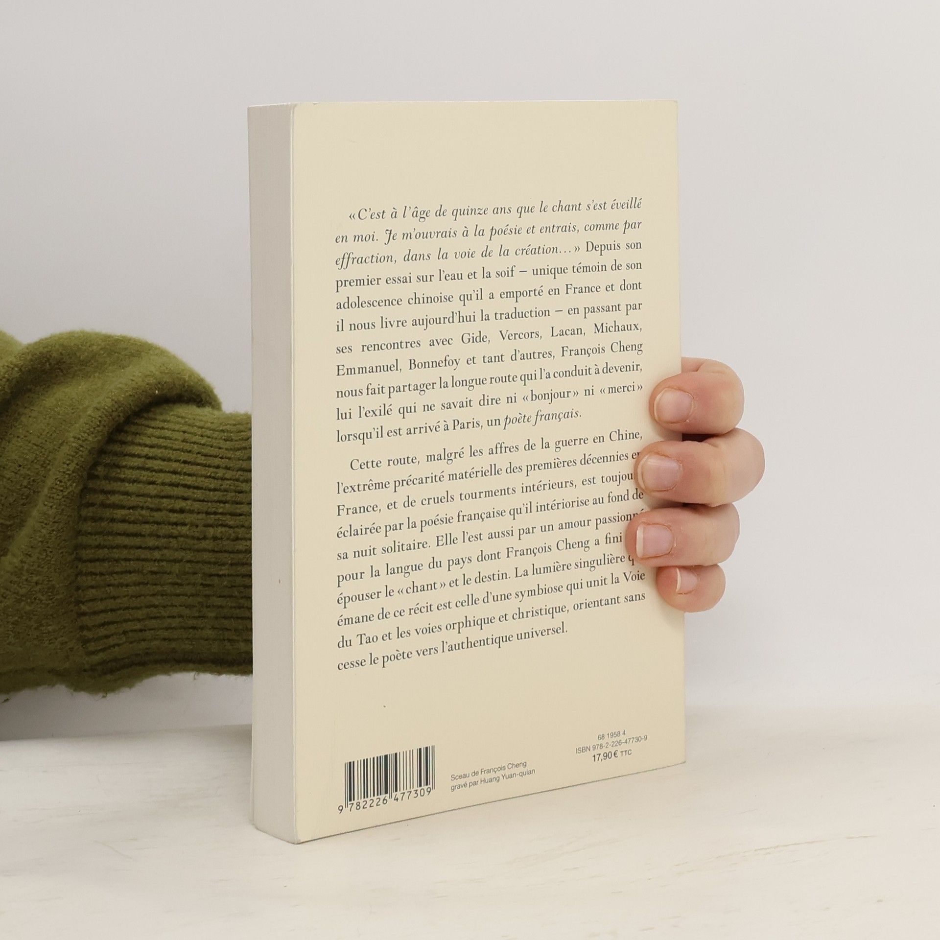 Palmarès Le Point - Les 30 livres de l'année 2022 « C'est à l'âge de quinze ans que le chant s'est éveillé en moi. Je m'ouvrais à la poésie et entrais, comme par effraction, dans la voie de la création... » Depuis son premier essai sur l'eau et la soif - unique témoin de son adolescence chinoise qu'il a emporté en France et dont il nous livre aujourd'hui la traduction - en passant par ses rencontres avec Gide, Vercors, Lacan, Michaux, Emmanuel, Bonnefoy et tant d'autres, François Cheng nous fait partager la longue route qui l'a conduit à devenir, lui l'exilé qui ne savait dire ni « bonjour » ni « merci » lorsqu'il est arrivé à Paris, un poète français . Cette route, malgré les affres de la guerre en Chine, l'extrême précarité matérielle des premières décennies en France, et de cruels tourments intérieurs, mais est toujours éclairée par la poésie française qu'il intériorise au fond de sa nuit solitaire. Elle l'est aussi par un amour passionné pour la langue d'un pays dont François Cheng a fini par épouser le « chant » et le destin. La lumière singulière qui émane de ce récit est celle d'une symbiose qui unit la Voie du Tao et la voie orphique et christique, orientant sans cesse le poète vers l'authentique universel. " Une merveille." Challenges