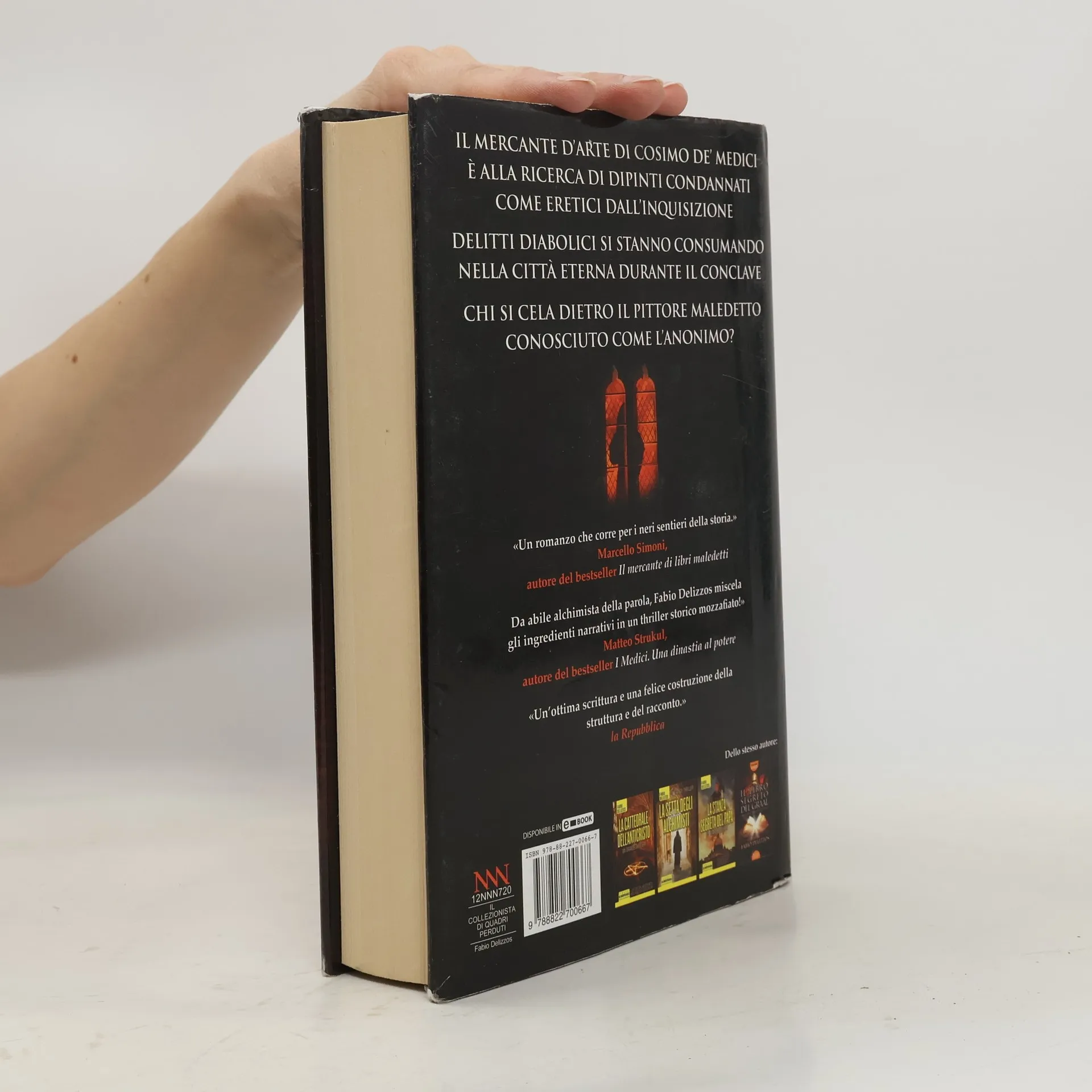 Roma, primavera del 1555. Mentre si attende con ansia che il conclave elegga un nuovo pontefice, la Città Eterna è teatro di inquietanti omicidi, apparentemente legati al mondo dell'arte. Il collezionista Raphael Dardo, insieme ad Ariel Colorni, alchimista e geniale inventore, è alla ricerca di quadri considerati eretici dall'Inquisizione, per salvarli dal rogo. È interessato, in particolare, a un pittore noto come l'Anonimo, i cui dipinti, che si distinguono per un realismo mai visto prima, si dice siano opera del diavolo. Raphael si troverà pericolosamente sulla stessa strada dell'implacabile inquisitore del Santo Uffizio, Girolamo Arquez, da tempo sulle tracce del pittore maledetto. Bellissime modelle, artisti folli, collezionisti stravaganti, eretici satanisti: quella di Raphael sarà una ricerca molto più rischiosa del previsto, che lo condurrà fra monasteri e bordelli, osterie e labirinti sotterranei, fino alla scoperta di una verità sconvolgente...