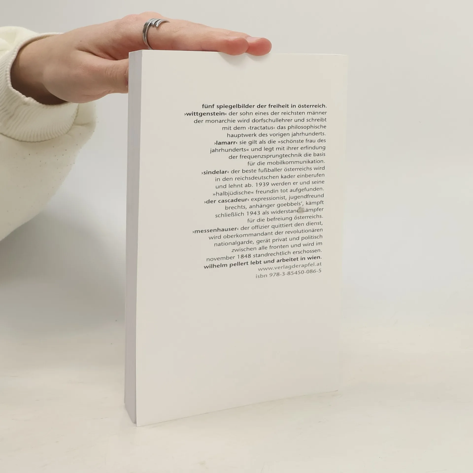 Fünf Theaterstücke, Wilhelm Pellert, Wittgenstein, Lamarr, Šindelář, Der Cascadeur, Messenhauser, Apfeltext