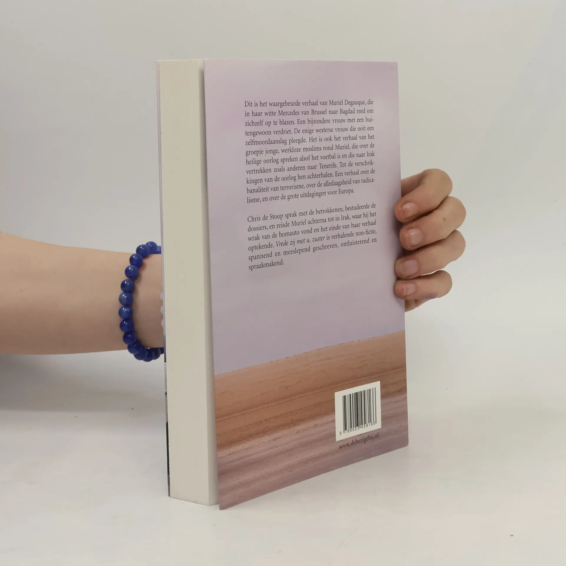Dit is het verhaal van Muriel Degauque, die in haar witte Mercedes van Brussel naar Bagdad reed om zichzelf op te blazen. De enige Europese vrouw die ooit een zelfmoordaanslag pleegde. Dit is ook het verhaal van het groepje jonge, werkloze moslims rond Muriel, die over de heilige oorlog spreken alsof het voetbal is en die naar Irak vertrekken zoals anderen naar Tenerife. Tot de verschrikkingen van de oorlog hen achterhalen. Het is een verhaal over de banaliteit van terrorisme en de alledaagsheid van radicalisme. En over de grote uitdagingen van deze tijd. Chris De Stoop sprak met betrokkenen, bestudeerde de dossiers en reisde Muriel achterna tot in Bagdad, waar hij het wrak van de bomauto vond en het einde van haar verhaal optekende. Vrede zij met u, zuster is verhalende non-fictie in de Angelsaksische traditie. Spannend en meeslepend geschreven. Ontluisterend en spraakmakend.