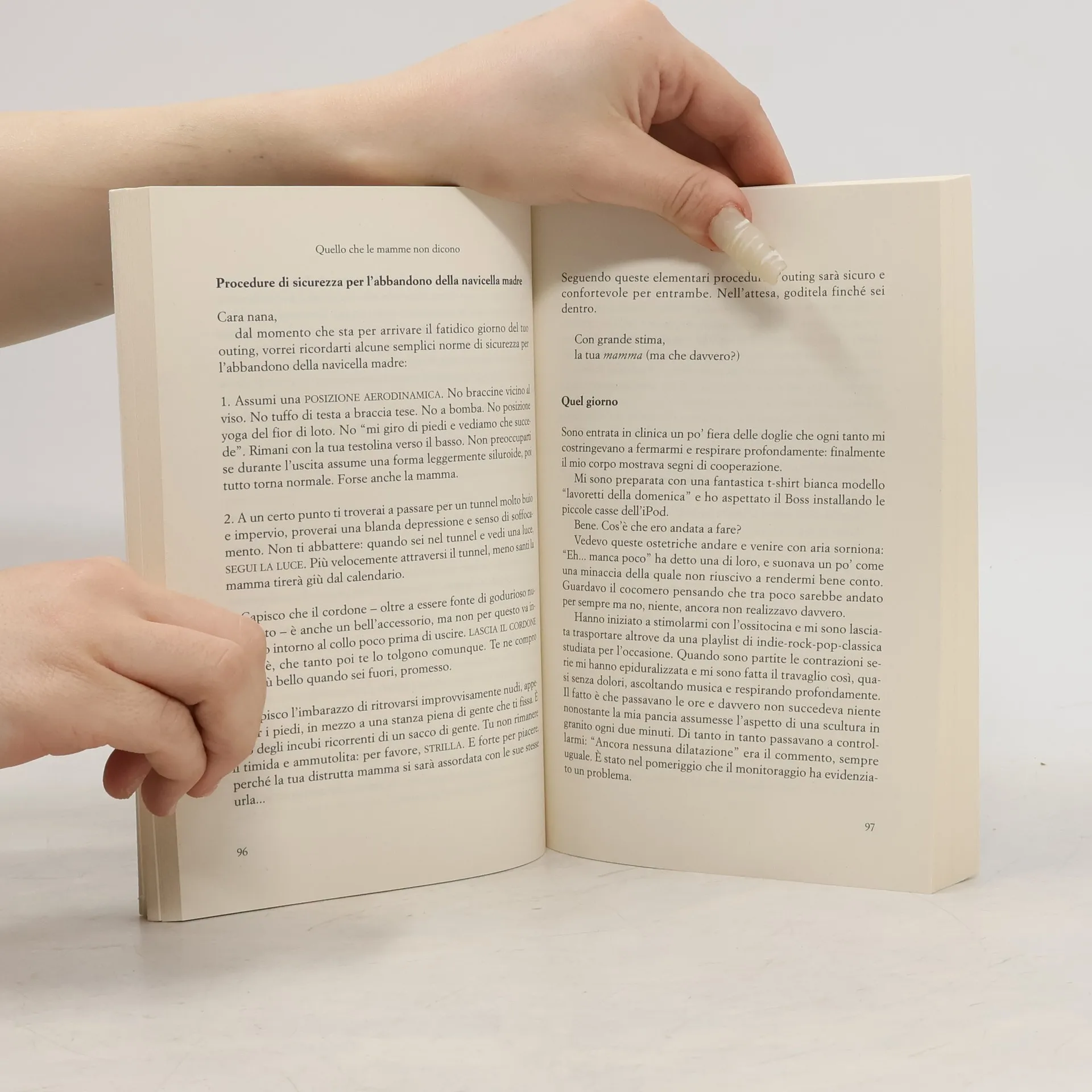 Lei ha 27 anni e crede nel mojito, nella carriera, nel suo uomo e nei viaggi improvvisati. La nana ha cinque settimane e abita la sua pancia. Scoprirlo significa precipitare in un mondo di donne che sembrano aver abbandonato sogni, ambizioni e personalità per entrare nel sacro ruolo di “madre”. Uno shock che l’autrice-protagonista decide di superare armandosi di buoni propositi, ma soprattutto di ironia e sarcasmo. Dimenticate la mammina trentacinquenne tutta dedizione e sacrificio. Qui si sostiene che è buono e giusto conservare la parte migliore di sé – quella divertente, folle, avventuriera – anche diventando mamma. Che l’istinto materno a volte arriva e altre è in ritardo. Che esistono momenti neri che nessuno racconta, che dopo un mese di neonato ne servirebbero tre di psicoterapia, e che Pampers e Pampero possono andare perfettamente d’accordo.