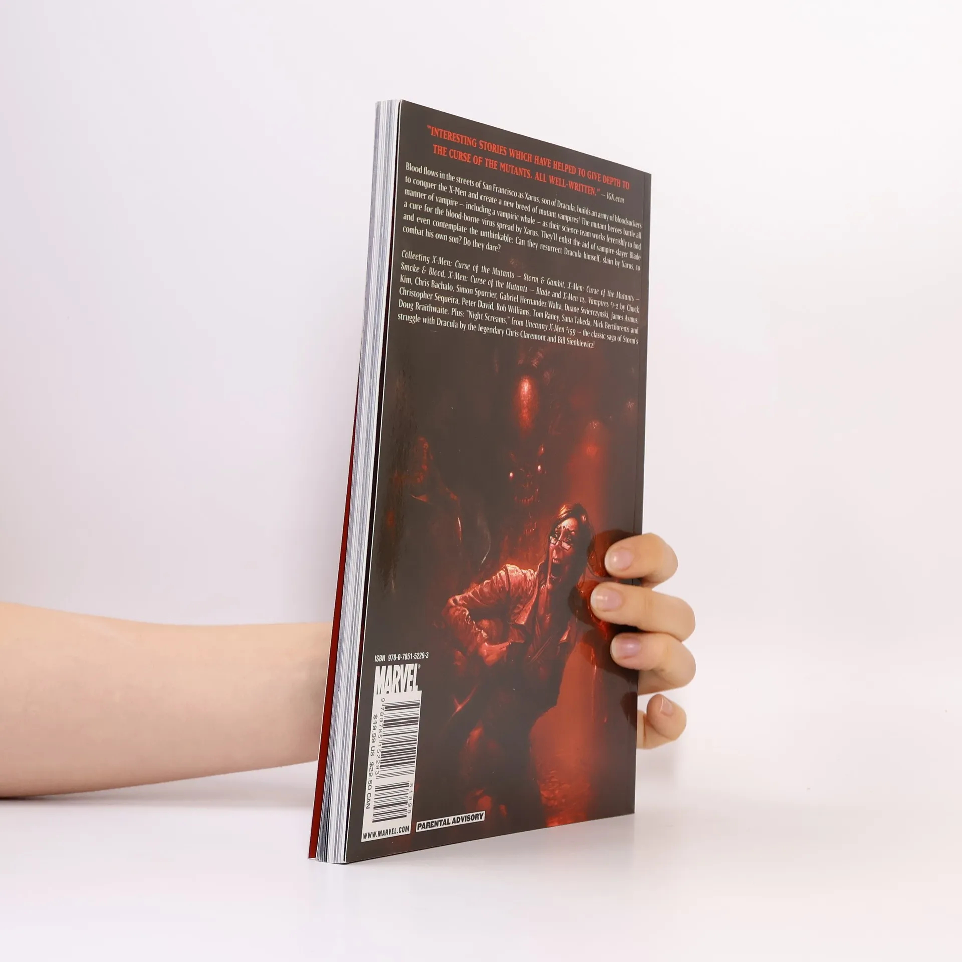 Blood flows in the streets of San Francisco as Xarus, son of Dracula, builds an army of bloodsuckers to conquer the X-Men and create a new breed of mutant vampires! The mutant heroes battle all manner of vampire - including a vampiric whale - as their science team works feverishly to find a cure for the blood-borne virus spread by Xarus. They'll enlist the aid of vampire-slayer Blade and even contemplate the unthinkable: Can they resurrect Dracula himself, slain by Xarus, to combat his own son? Do they dare? Collecting X-MEN: CURSE OF THE MUTANTS - STORM & GAMBIT, X-MEN: CURSE OF THE MUTANTS - SMOKE & BLOOD, X-MEN: CURSE OF THE MUTANTS - BLADE, X-MEN VS. VAMPIRES #1-2 and UNCANNY X-MEN #159.