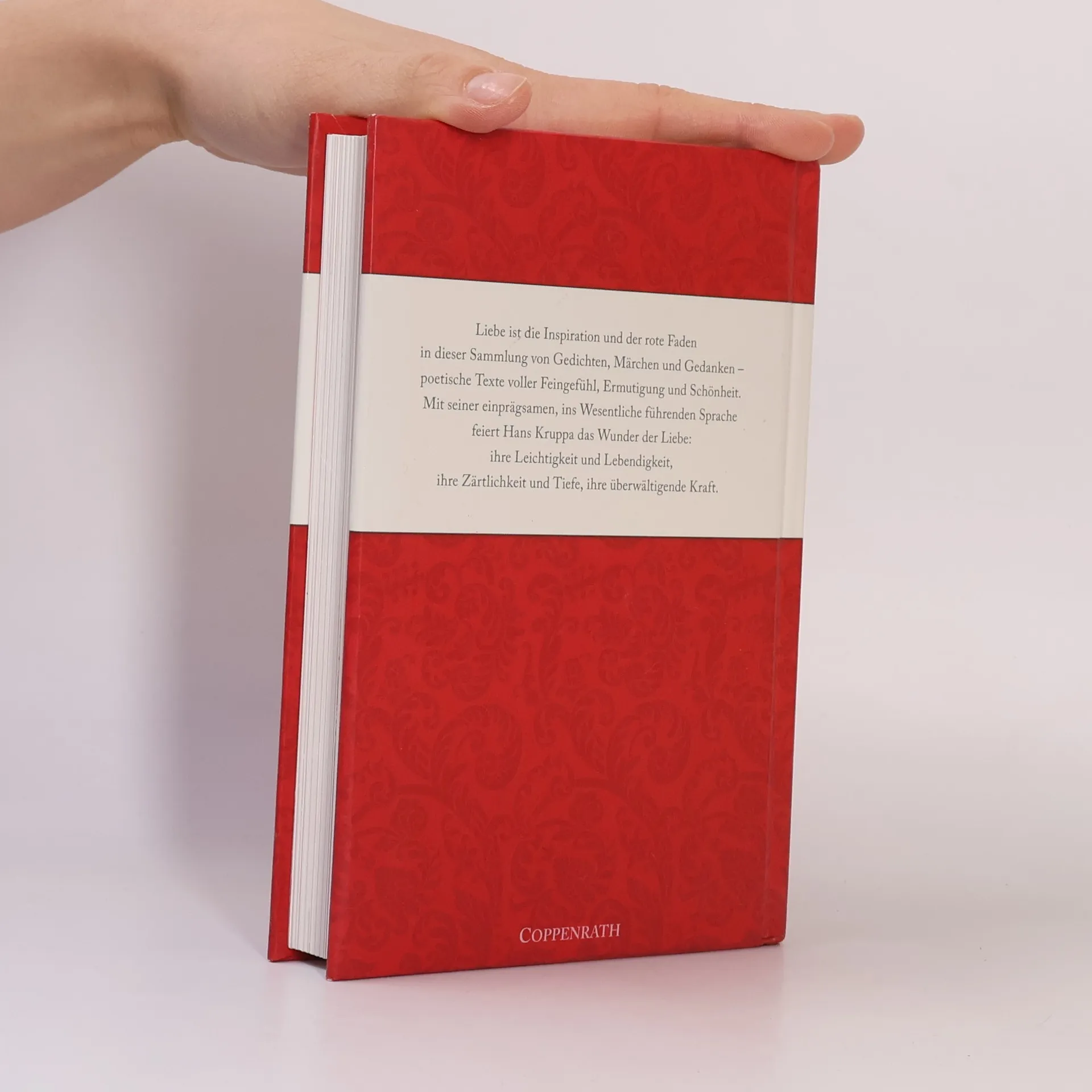 Liebe ist die Inspiration und der rote Faden in dieser neuen Sammlung von Gedichten, Märchen und Gedanken eines der bekanntesten deutschen Dichter unserer Zeit, Hans Kruppa. Seine poetischen Texte sind voller Feingefühl, Ermutigung und Schönheit. Mit seiner einprägsamen Sprache feiert der Autor das Wunder der Liebe - ihre Leichtigkeit und Lebendigkeit, ihre Zärtlichkeit und Tiefe, ihre überwältigende Kraft. Das wunderschön ausgestattete und einfühlsam illustrierte Buch ist ein hochwertiges Geschenk für frisch Verliebte, lang Verheiratete oder gute Freunde, denen man seine Verbundenheit auf besondere Weise zum Ausdruck bringen möchte.
