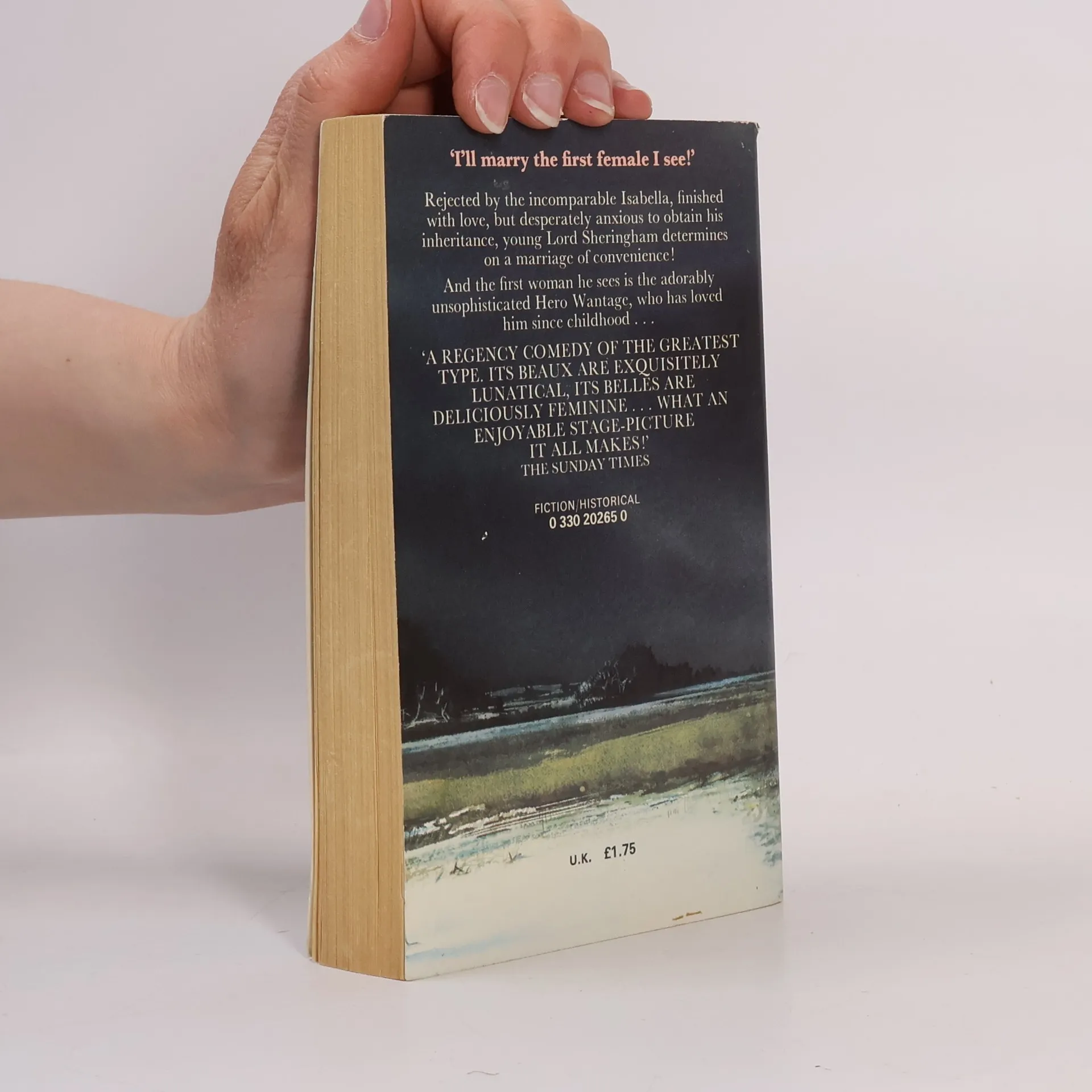 Rejected by the woman he deeply craves, the incomparable Miss Milborne, for his unsteadiness of character, wild Viscount Sheringham is bent on avenging fate and coming into his fortune. Rebellious young Sherry could not gain his inheritance until he married, he leaves his mother's house and on a passionate impulse, he vowed to marry the next woman he saw. But the very first woman he sees is his life-long friend Hero Wantage, a young and charmingly unsophisticated girl. To orphaned, pixie-ish Hero, who has secretly loved him since childhood, it seemed like a star-studded dream when dashing Lord Sheringham asked her to be his bride--for although she knew it was a marriage of convenience (his convenience), it eliminated the depressing prospect of life as a governess. It seems that this marriage might solve all their problems. Back in London, Hero soon discovers the glamorous social scene and strives to make a name for herself among the right circles. But their marriage soon became a frenetic comedy of errors, as Hero tried to keep up with the fashionable and very unfamiliar society in which she now found herself. From chariot races to gambling tables to exclusive drawing rooms, an exasperated Sherry followed in his wife's wake, trying to clear the air after her well-intentioned but scatterbrained escapades. But when Sherry intervenes, fearing she’ll embarrass them both, misunderstandings pile up, friendships are tested and hearts are pushed to breaking point. And it was with great surprise that both Hero and Sherry discovered that even a marriage of convenience can turn into a love affair, under certain circumstances....