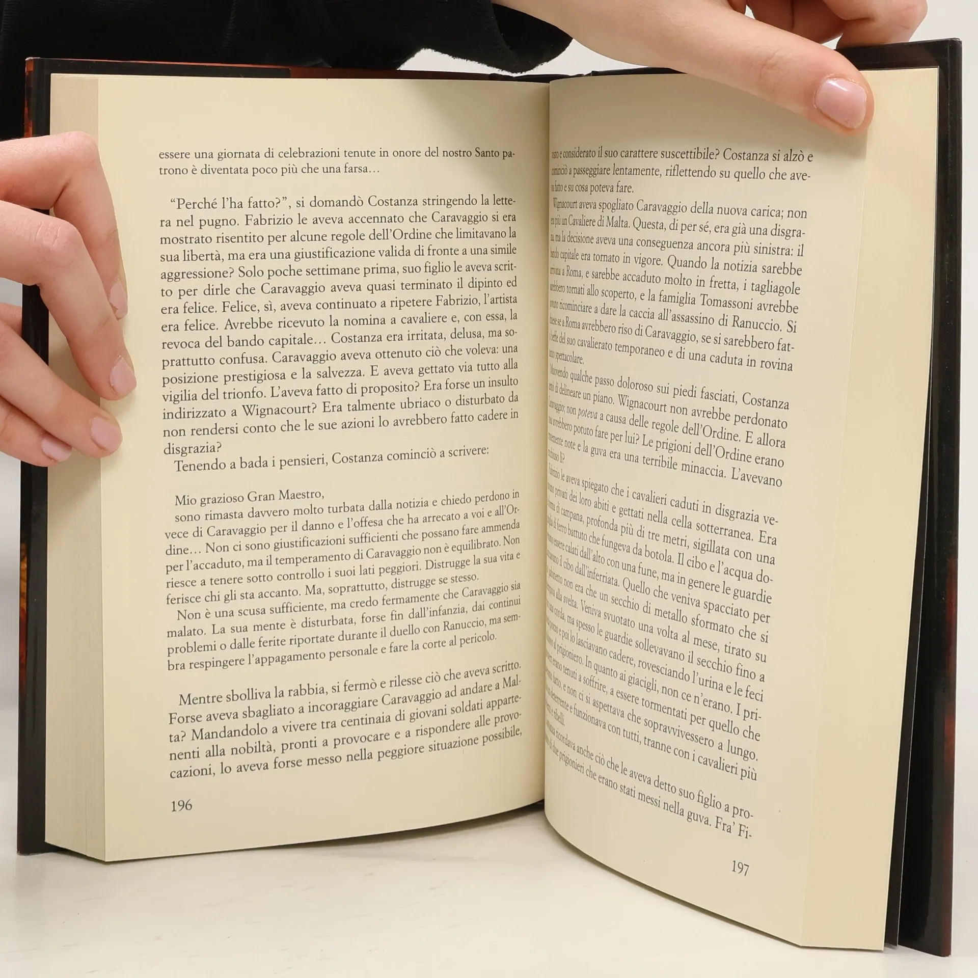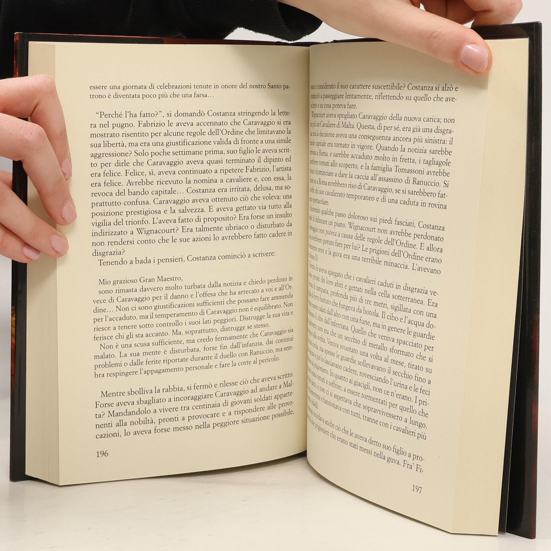 Per il delitto di Ranuccio Tomassoni, Caravaggio è stato condannato al bando capitale: chiunque, in qualsiasi luogo, può eseguire la sentenza di morte ed esigere una ricompensa. In fuga e con una taglia sulla testa, l’artista si rende conto di essere una preda troppo facile, ma trova un potente alleato nella famiglia Colonna, che lo nasconde – rischiando di attirare le ire del papa – fino al momento giusto per farlo fuggire a Napoli, sotto la protezione di Costanza Colonna Sforza. Lontano dalla giurisdizione di Roma e protetto dai Colonna, Caravaggio viene inondato di commissioni, alle quali si dedica nell’attesa del perdono papale, che il cardinale Scipione Borghese gli ha promesso. E le calde atmosfere napoletane, infatuate del suo genio, fanno di tutto per compiacerlo. Ma l’omicidio di Tomassoni non è stato dimenticato. E i nemici di Caravaggio sono sempre più vicini. Comincia allora una fuga che lo porterà a Malta e in Sicilia, verso un destino che sembra esigere a tutti i costi un prezzo di sangue dal pittore maledetto.