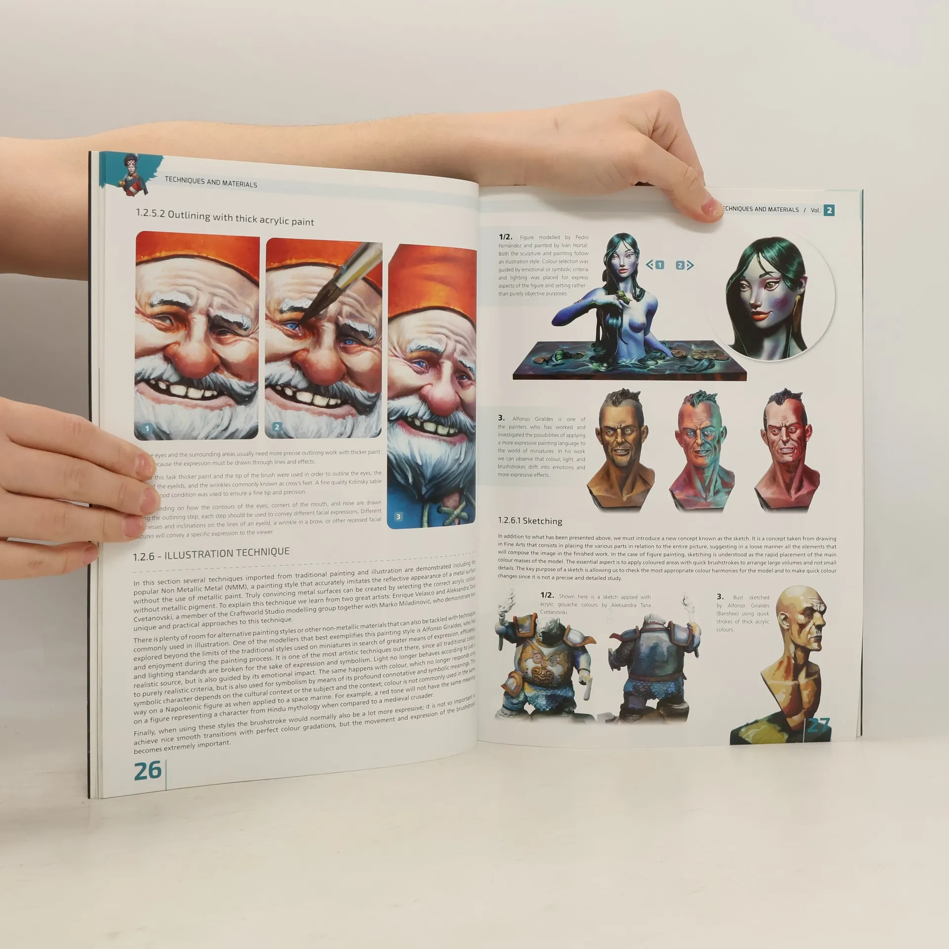 Volume 2 of the Encyclopedia of Figures delves into the materials, procedures, and techniques essential for painting and animating miniatures. After mastering visual language elements like colour, lighting, form, and texture in the first volume, readers can now explore painting techniques to accurately represent these elements on figures of any scale. Key questions addressed include the role of binders, how to dilute paint for glazes, and mixing highly saturated colours. Understanding the unique characteristics of various materials is crucial for achieving optimal results. This instructional text, compiled by some of the world's top painters, draws on years of research to demystify the painting process, making the hobby accessible and enjoyable. The book is organized around three primary mediums: acrylic, oil, and mixed techniques, incorporating pigments and fillers. It also emphasizes the two main application methods—brush and airbrush—allowing for a diverse range of realistic effects. Additionally, it covers various techniques that provide painters with a wealth of resources and effects, including gradients, glazes, washes, fresco casting, sketching, and layered effects.