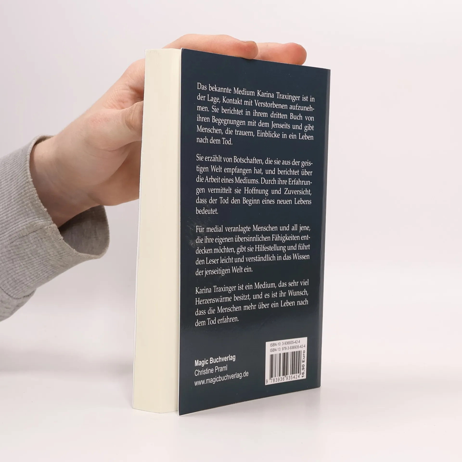 Ein Medium berichtet von seinen Erlebnissen und gibt spirituelle Anleitung Das bekannte Medium Karina Traxinger ist in der Lage, Kontakt mit Verstorbenen aufzunehmen. Sie berichtet in ihrem dritten Buch von ihren Begegnungen mit dem Jenseits und gibt Menschen die trauern, Einblicke in ein Leben nach dem Tod. Sie erzählt von Botschaften, die sie aus der geistigen Welt empfangen hat und berichtet über die Arbeit eines Mediums. Durch ihre Erfahrungen vermittelt sie Hoffnung und auch Zuversicht, dass der Tod der Beginn eines neuen Lebens bedeutet. Für medial veranlagte Menschen und all jene, die ihre eigenen übersinnlichen Fähigkeiten entdecken möchten, gibt sie Hilfestellung und führt den Leser leicht und verständlich in das Wissen der jenseitigen Welt ein. Karina Traxinger ist ein Medium das sehr viel Herzenswärme besitzt und es ist ihr Wunsch, dass die Menschen mehr über ein Leben nach dem Tod erfahren.
