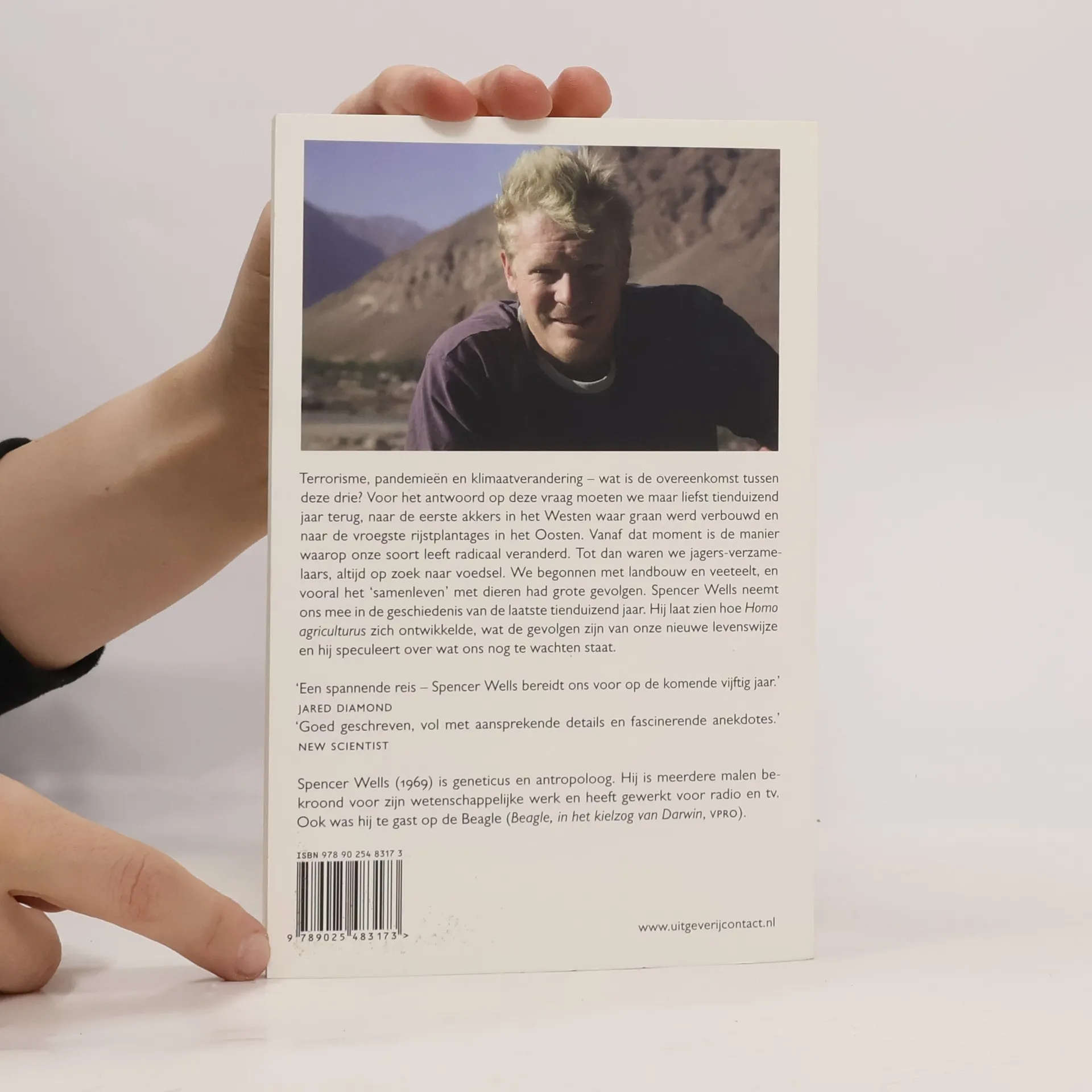 Terrorisme, pandemieën en klimaatverandering – wat is de overeenkomst tussen deze drie? Voor het antwoord op deze vraag moeten we maar liefst tienduizend jaar terug, naar de eerste akkers in het Westen waar graan werd verbouwd en naar de vroegste rijstplantages in het Oosten. Vanaf dat moment is de manier waarop onze soort leeft radicaal veranderd. Spencer Wells neemt ons mee in de geschiedenis van de laatste tienduizend jaar. Hij laat zien hoe Homo agriculturus zich ontwikkelde, wat de gevolgen zijn van onze nieuwe levenswijze en hij speculeert over wat ons nog te wachten staat.