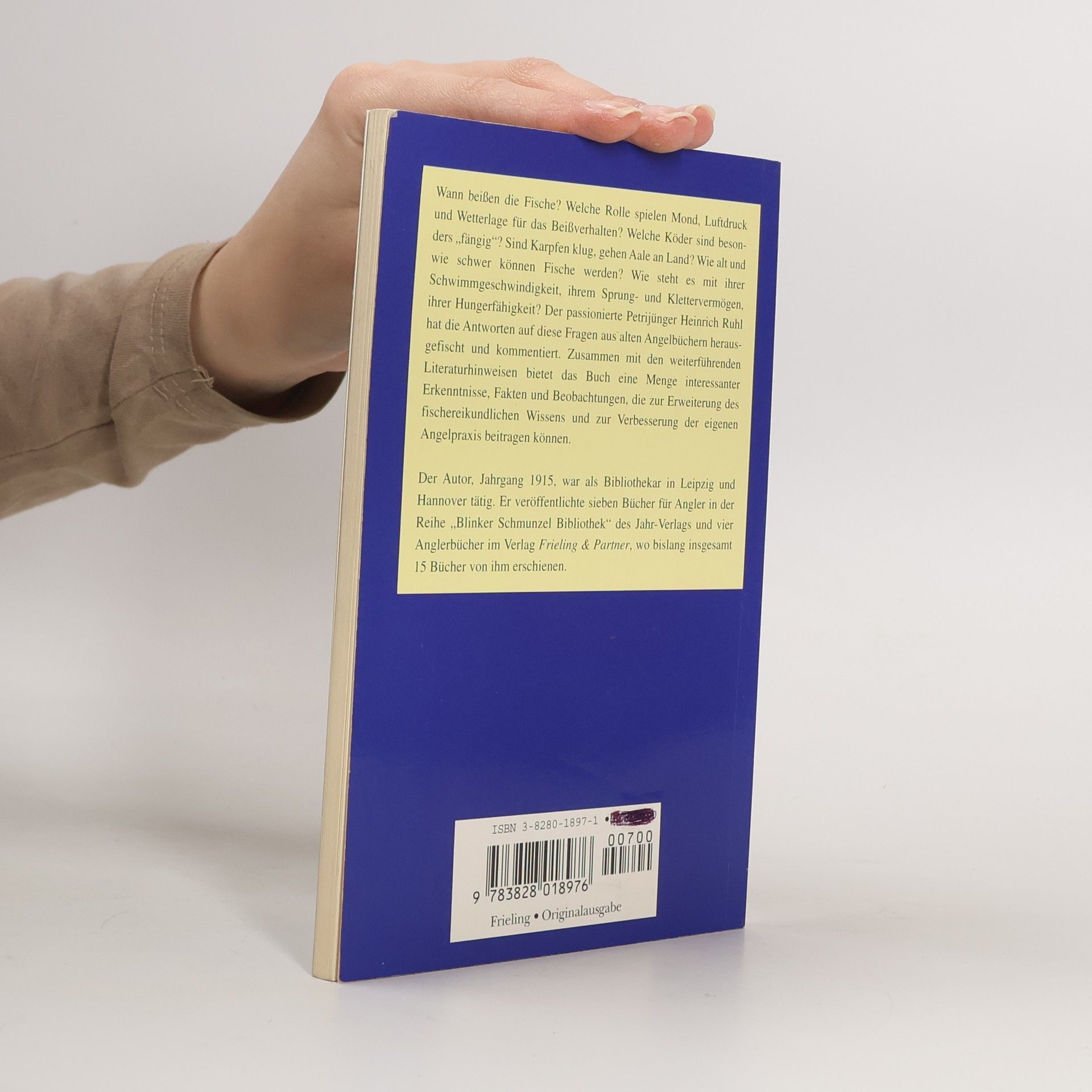 Wann beißen die Fische? Welche Rolle spielen Mond, Luftdruck und Wetterlage für das Beißverhalten? Welche Köder sind besonders „fängig“? Sind Karpfen klug, gehen Aale an Land? Wie alt und wie schwer können Fische werden? Wie steht es mit ihrer Schwimmgeschwindigkeit, ihrem Sprung- und Klettervermögen, ihrer Hungerfähigkeit? Der passionierte Petrijünger Heinrich Ruhl hat die Antworten auf diese Fragen aus alten Angelbüchern herausgefischt und kommentiert. Zusammen mit den weiterführenden Literaturhinweisen bietet das Buch eine Menge interessanter Erkenntnisse, Fakten und Beobachtungen, die zur Erweiterung des fischereikundlichen Wissens und zur Verbesserung der eigenen Angelpraxis beitragen können.
