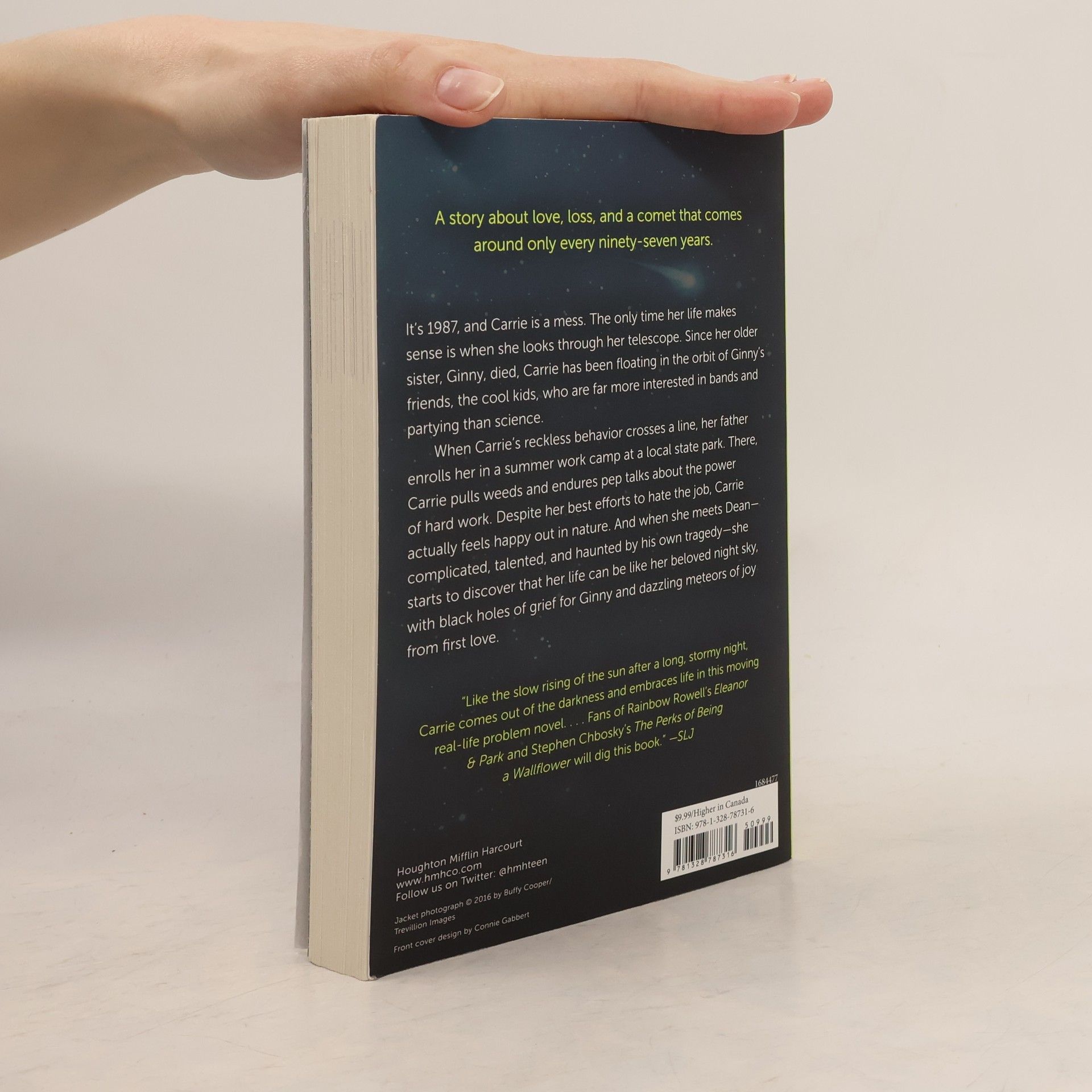 Eleanor & Park meets Perks of Being a Wallflower in this bittersweet 1980's story about love, loss, and a comet that only comes around every ninety-seven years. When Carrie looks through her telescope, the world makes sense. It's life here on Earth that's hard to decipher. Since her older sister, Ginny, died, Carrie has been floating in the orbit of Ginny's friends, the cool kids, who are far more interested in bands and partying than science. Carrie's reckless behavior crosses a line, and her father enrolls her in a summer work camp at a local state park. There, Carrie pulls weeds and endures pep talks about the power of hard work. Despite her best efforts to hate the job, Carrie actually feels happy out in nature. And when she meets Dean--warm, thoughtful, and perceptive--she starts to discover that her life can be like her beloved night sky, with black holes of grief for Ginny and dazzling meteors of joy from first love.