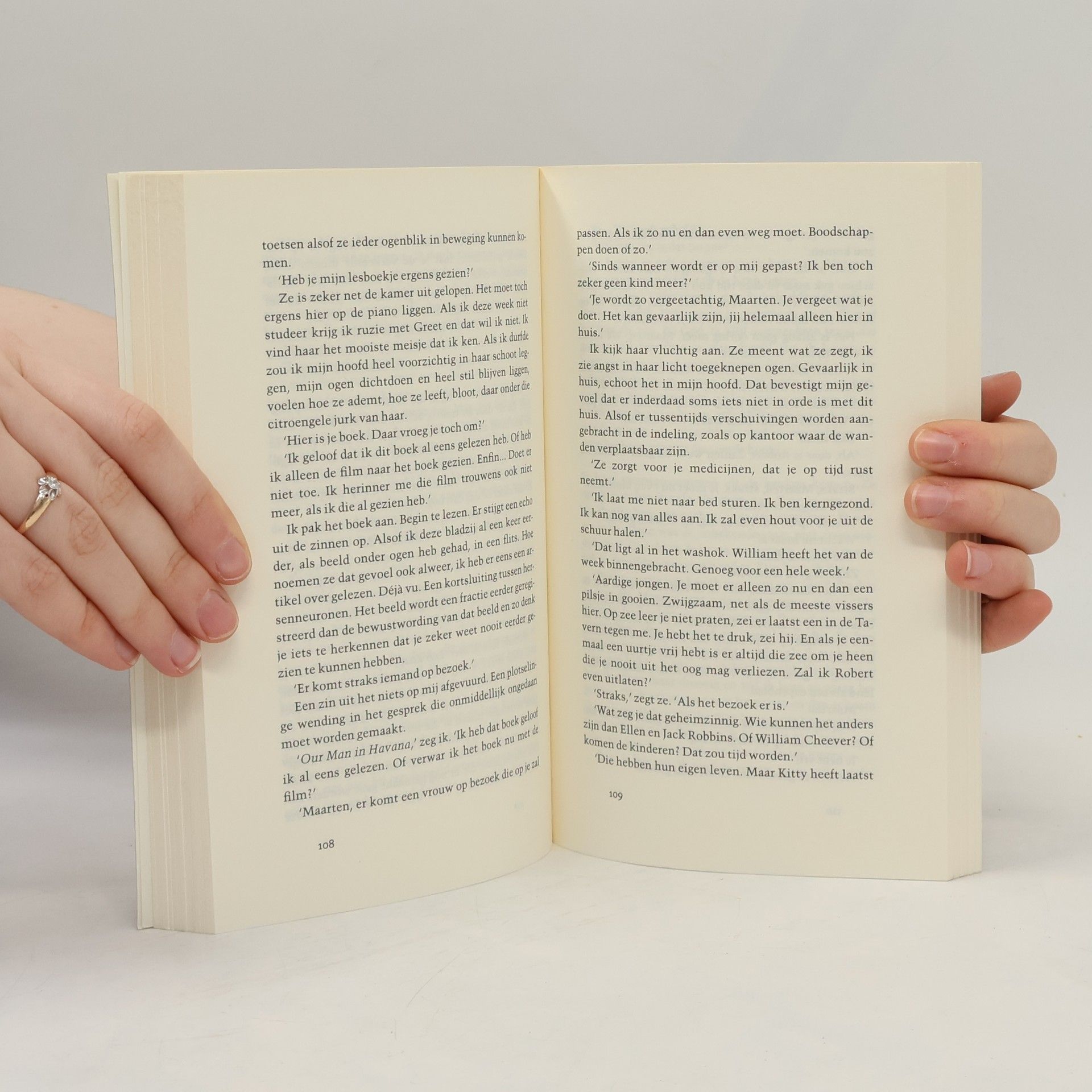 Maarten Klein verliest langzaam maar zeker zijn greep op de werkelijkheid. Hij kan heden en verleden niet meer onderscheiden, wil plotseling weer naar zijn werk en ziet zijn echtgenote voor een vreemde aan. 'Achter me in de deuropening staat een vrouw. Haar bruine haar valt met een lok schuin naar rechts over haar voorhoofd. [...] Ze houdt me in de gaten.' Meer nog dan een verhaal over dementie is Hersenschimmen een liefdesgeschiedenis, met een overmijdelijk tragisch einde.