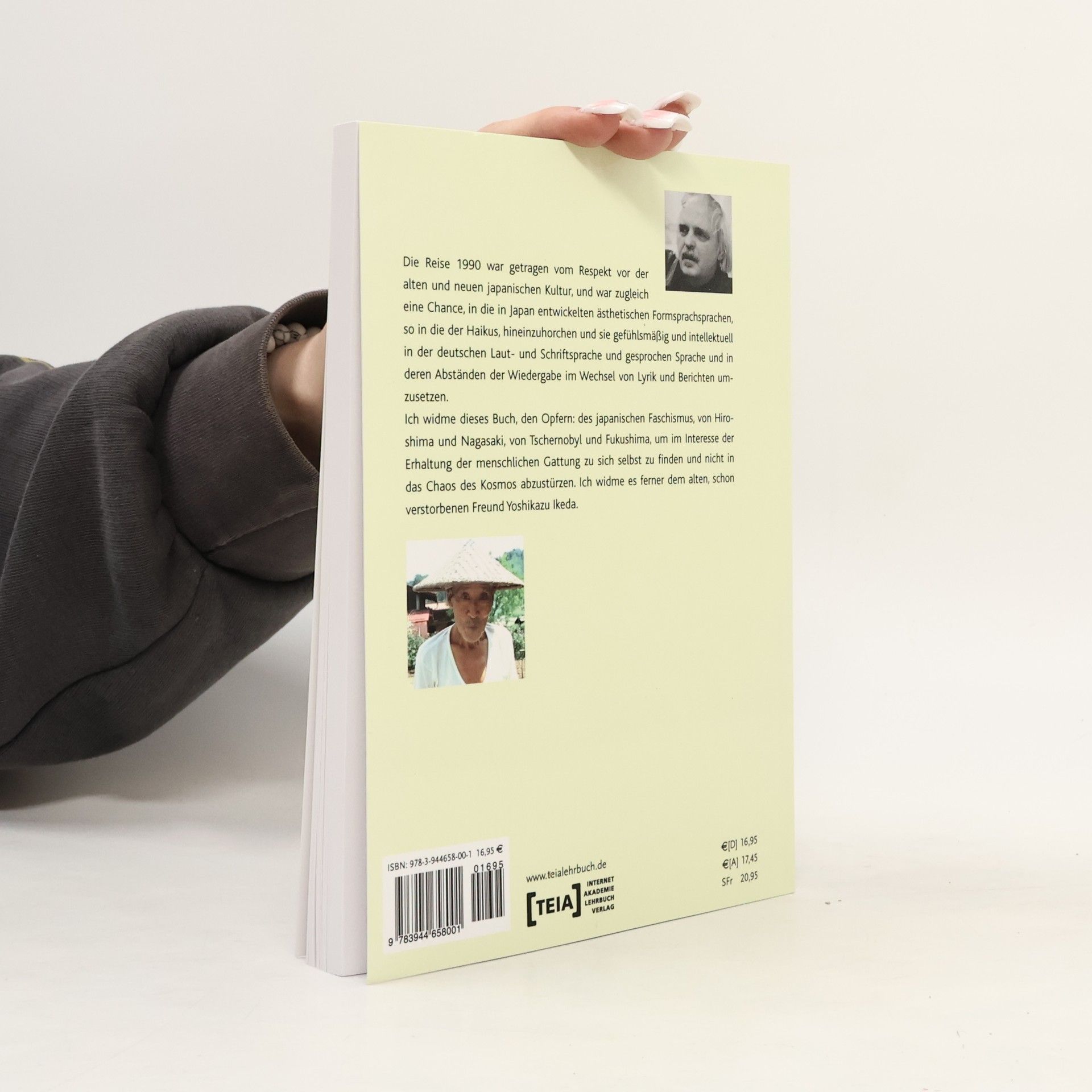 1990 fiel die Berliner Mauer und eröffnete neue Kommunikationshorizonte auf politischer, technischer und ökonomischer Ebene, während die Widersprüche weiterhin bestehen. Nach dem militärischen Einsatz der Atombombe folgte der Versuch, Atomkraft zivil zu nutzen, um die Energieprobleme der wachsenden Industriegesellschaften zu lösen. Schocks wie die Katastrophen von Tschernobyl und Fukushima führten zu Orten des Todes und irreversibler Verstrahlung, die als Wunden der Erde und Mahnorte behandelt werden. Trotz dieser Herausforderungen hat die Menschheit bisher keine ausreichende Antwort auf die unkontrollierbare Energie gefunden und ist nicht in der Lage, Atomkraftwerke weltweit abzuschalten und durch neue Energien zu ersetzen. Es gibt nur zaghafte Fortschritte. Die Reise von 1990 war geprägt von Respekt für die alte und neue japanische Kultur und bot die Möglichkeit, in die ästhetischen Sprachformen Japans, wie die Haikus, einzutauchen. Das Buch ist den Opfern des japanischen Faschismus, von Hiroshima und Nagasaki sowie Tschernobyl und Fukushima gewidmet, um im Interesse der Menschheit zu einem besseren Verständnis zu gelangen und nicht im Chaos des Kosmos zu versinken. Es ist auch Yoshikazu Ikeda gewidmet, einem bereits verstorbenen Freund.