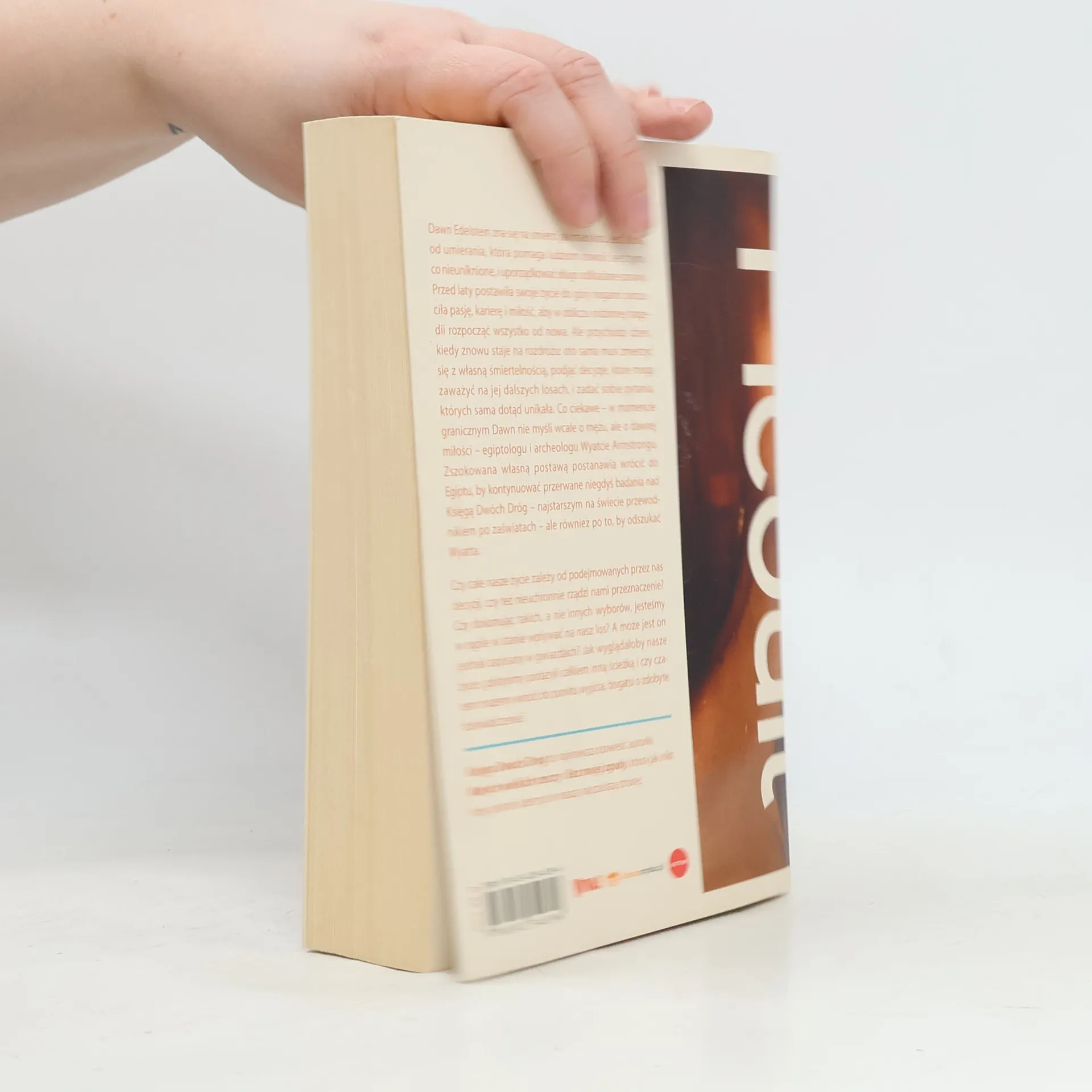 Zna tematykę śmierci na wskroś. Dawn Edelstein pracuje jako doula od umierania. Wspiera ludzi, którzy jedną drogą są już w zaświatach. Pomaga im oswoić się z tą myślą i poukładać nieuporządkowane dotąd sprawy. W przeszłości zaczęła wszystko od nowa, by znów mieć czystą kartę. Tymczasem los ponownie wystawia ją na próbę. Stoi przed nią konieczność podjęcia ważnej decyzji - sama musi stawić czoła własnej śmiertelności, odpowiedzieć sobie na zamiatane pod dywan, niewygodne pytania i podjąć kluczowe decyzje. W punkcie krytycznym swego życia zdaje się nie myśleć o mężu. Jej umysł zaprząta pewien znany jej wcześniej egiptolog i archeolog, Wyat Armstrong. Postanawia wrócić do wcześniej prowadzonych badań nad najstarszym przewodnikiem po świecie umarłych. Wyrusza więc do Egiptu, gdzie pochyli się nad Księgą Dwóch Dróg. Czy naszym życiem kieruje przeznaczenie? Czy my i nasze wybory mamy wpływ na nasz los?