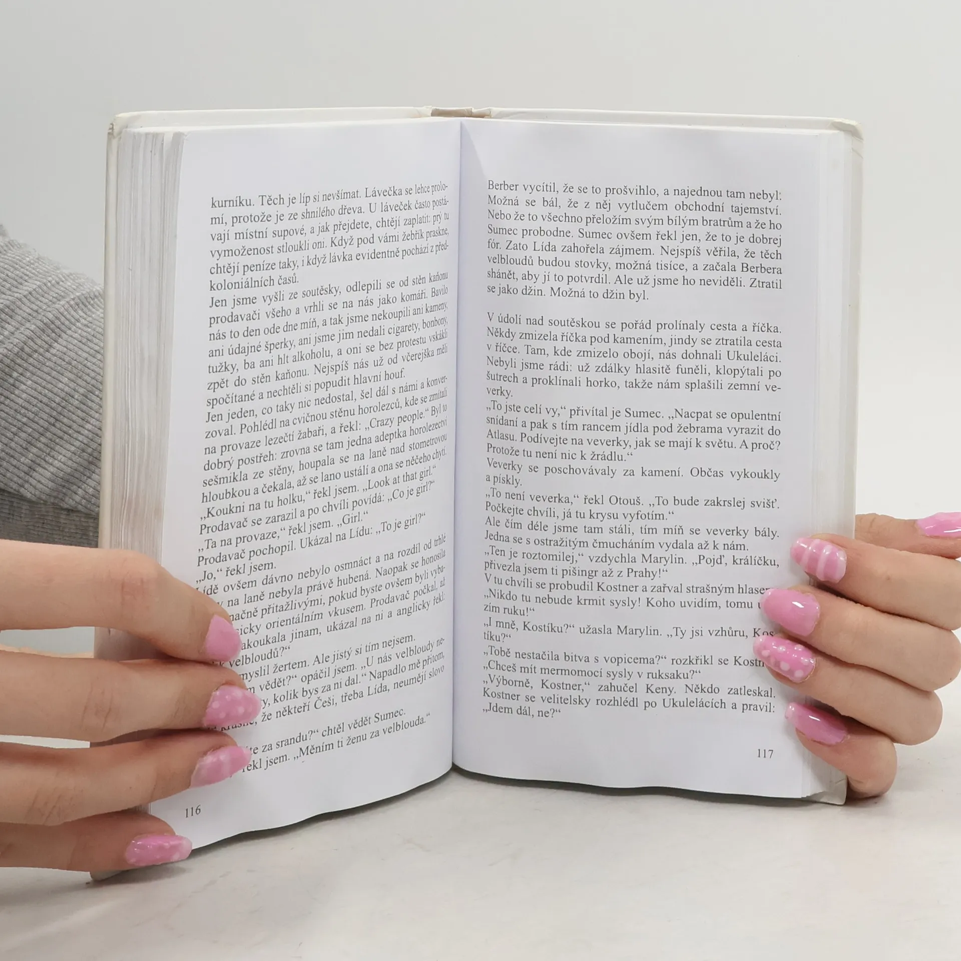 Vzduch se třepetal horkem pořád víc a víc a jediné, čemu se v tom kraji přeludů dalo věřit, byla skutečnost, že tady, mezi Vysokým Atlasem a Antiatlasem ocitla se Bílá příšera na nejjižnějším bodě svého kovového života. Bongo ji poplácal po volantu a obrátil k nejvyšším horám na severu. - Potom jsme se opojeni, dojati i vystrašeni dlouhé hodiny vznášeli nad barevnými propastmi. Shlíželi jsme na kužele a mamutí hřbety všech tvarů: kopce hnědé, fialové, černé a jásavě hnědé, ba i zelené, nikoli však od trávy, nýbrž od barvy kamení. Pluli jsme ve výšinách, jako by Bílá příšera byla ptákem a kroužila podél kolmých stěn, na levoboku svobodného povětří.