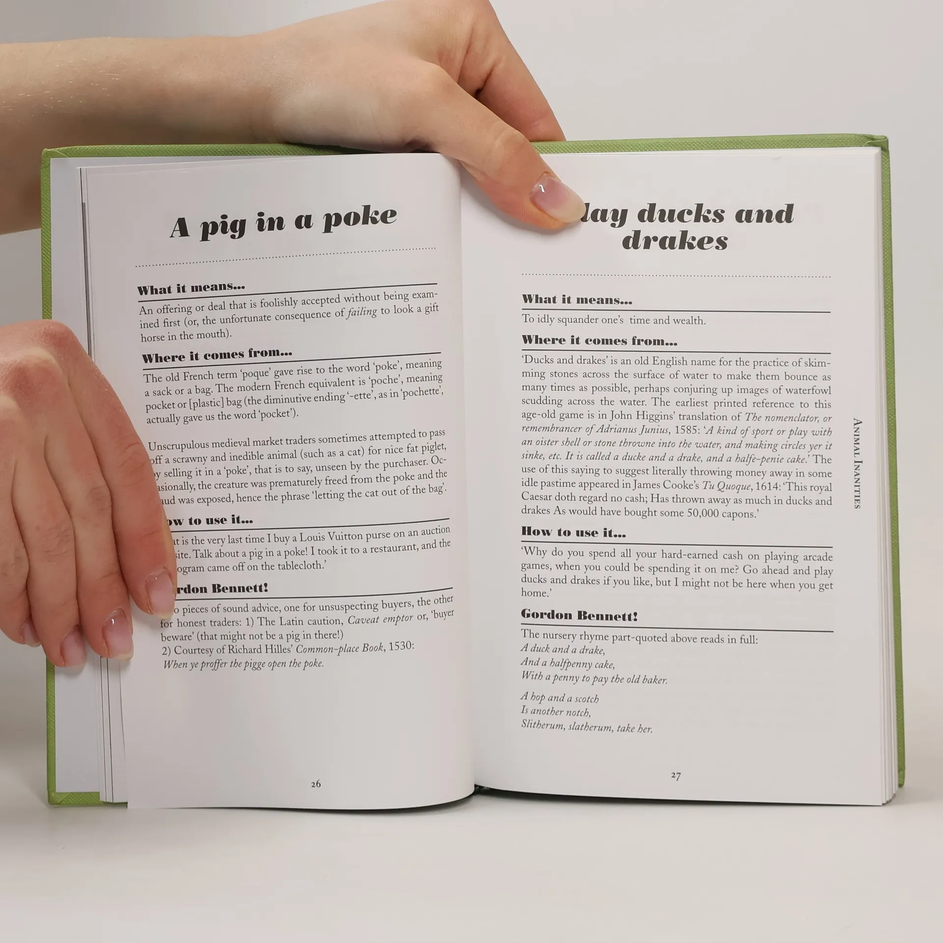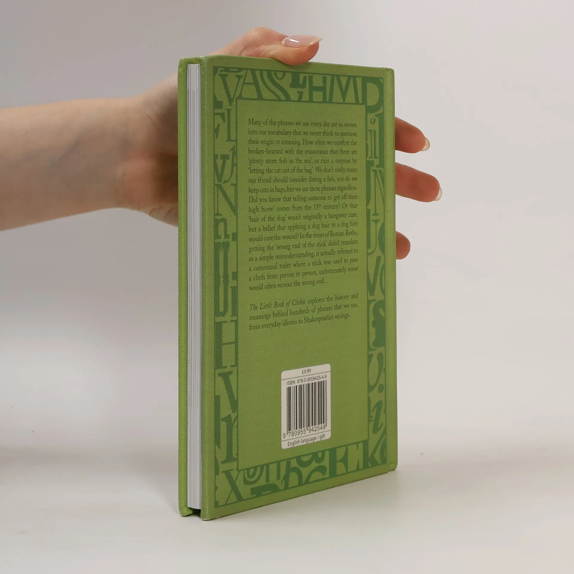 Many of the phrases we use every day are so woven into our vocabulary that we never think to question their origin or meaning. How often we comfort the broken-hearted with the reassurance that there are 'plenty more fish in the sea', or ruin a surprise by 'letting the cat out of the bag'. We don't really mean our friend should consider dating a fish, nor do we keep cats in bags, but we use these phrases regardless. Did you know that telling someone to 'get off their high horse' comes from the 13th century? Or that 'hair of the dog' wasn't originally a hangover cure, but belief that applying a dog hair to a dog bite would cure the wound? In the times of Roman Baths getting the 'wrong end of the stick' didn't translate as a simple misunderstanding, it actually referred to a communal toilet where a stick was used to pass a cloth from person to person, unfortunately some would often recieve the wrong end... The Little Book Of Clichés explores the history and meanings behind hundreds of phrases that we use, from everyday idioms to Shakespearian sayings.