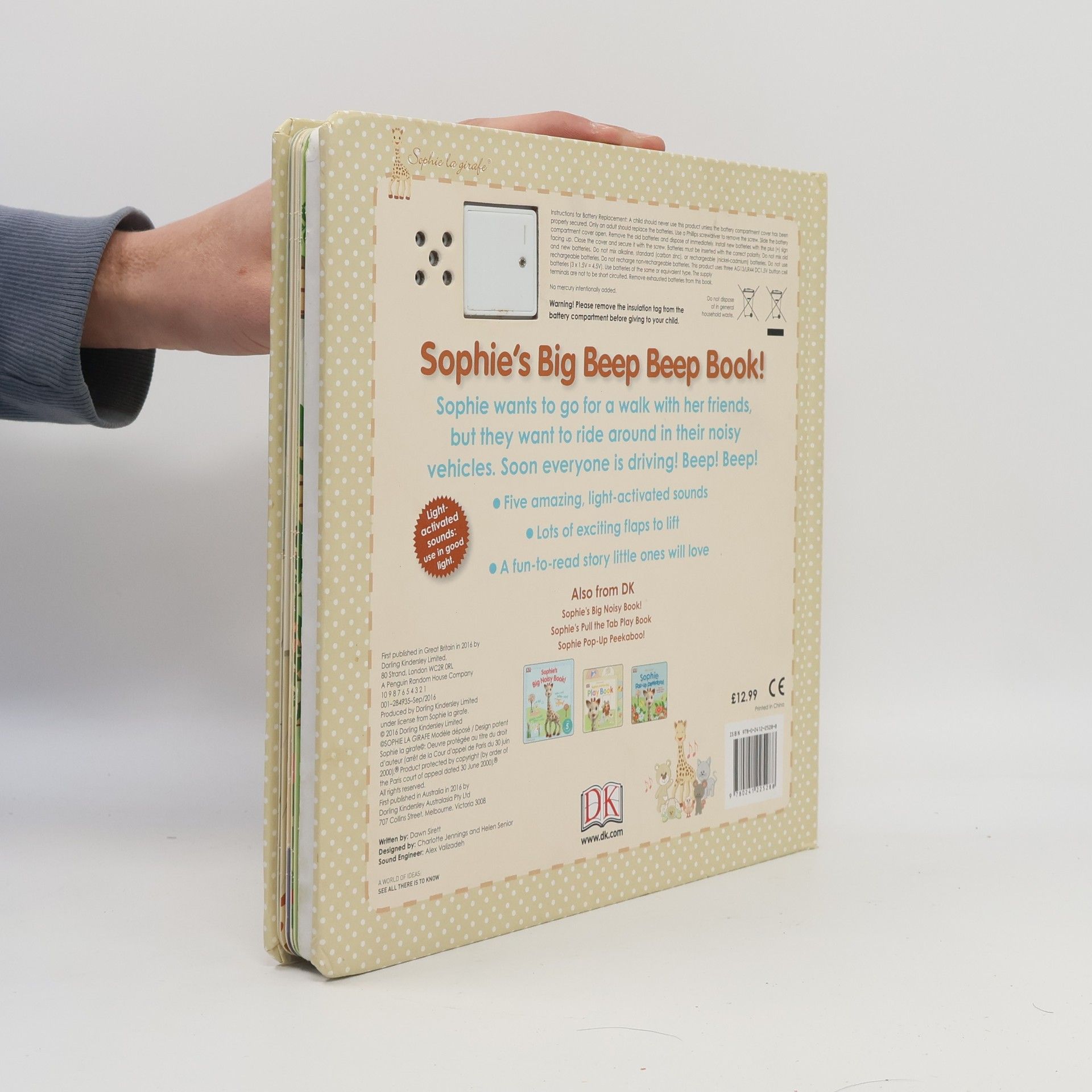 Sophie's Big Beep Beep Book! is a wonderful 'things that go' board book, ideal for parents who use the range of Sophie teething toys with their preschoolers.Full of flaps and light-activated sounds, this fun-filled story follows Sophie la girafe and her friends as they excitedly try out their noisy wheelie toys, and Sophie's plan for a walk is quickly diverted! Your child will love interacting with the story, pages, noises, and flaps, practising motor skills and encouraging early learning.This noisy vehicle book, with its engaging hands-on and imaginative play, is perfect for your curious toddler.