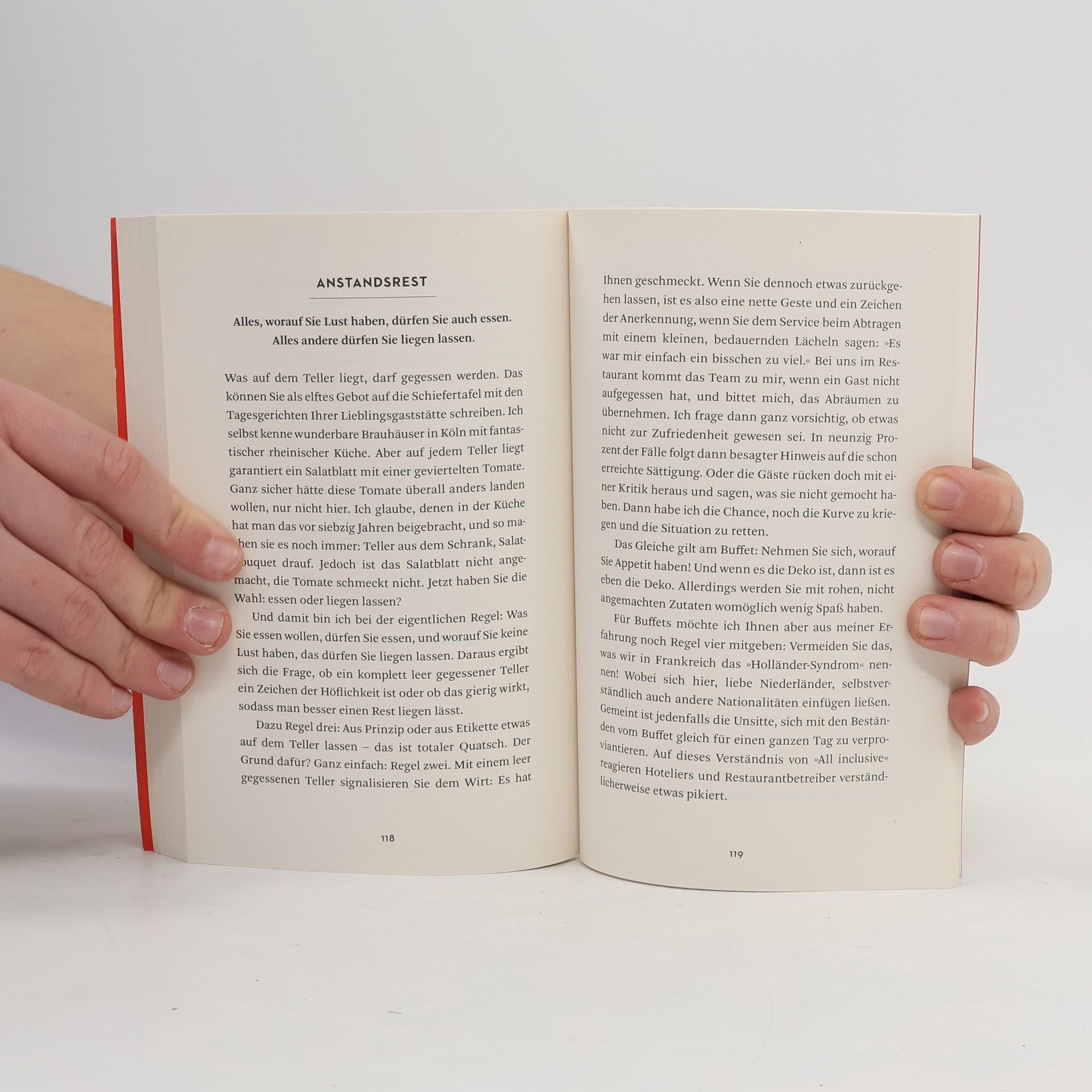 Nehme ich meinen Mantel mit an den Platz? Wie kommuniziere ich unauffällig meine Unverträglichkeiten und macht es einen Unterschied, welches Wasser ich bestelle? Kann ich höflich klarmachen, dass das Essen nicht schmeckt? Wie gehe ich damit um, wenn meine Begleitung zu viel Alkohol trinkt? Ist es ein Fauxpas, die Rechnung zu splitten, und wie gebe ich eigentlich wem richtig Trinkgeld? Nach über vierzig Jahren als Gastgeber hat Vincent Moissonnier so ziemlich alles erlebt, was man im Restaurantgeschäft erleben kann, und auf jede Frage eine charmante Antwort.