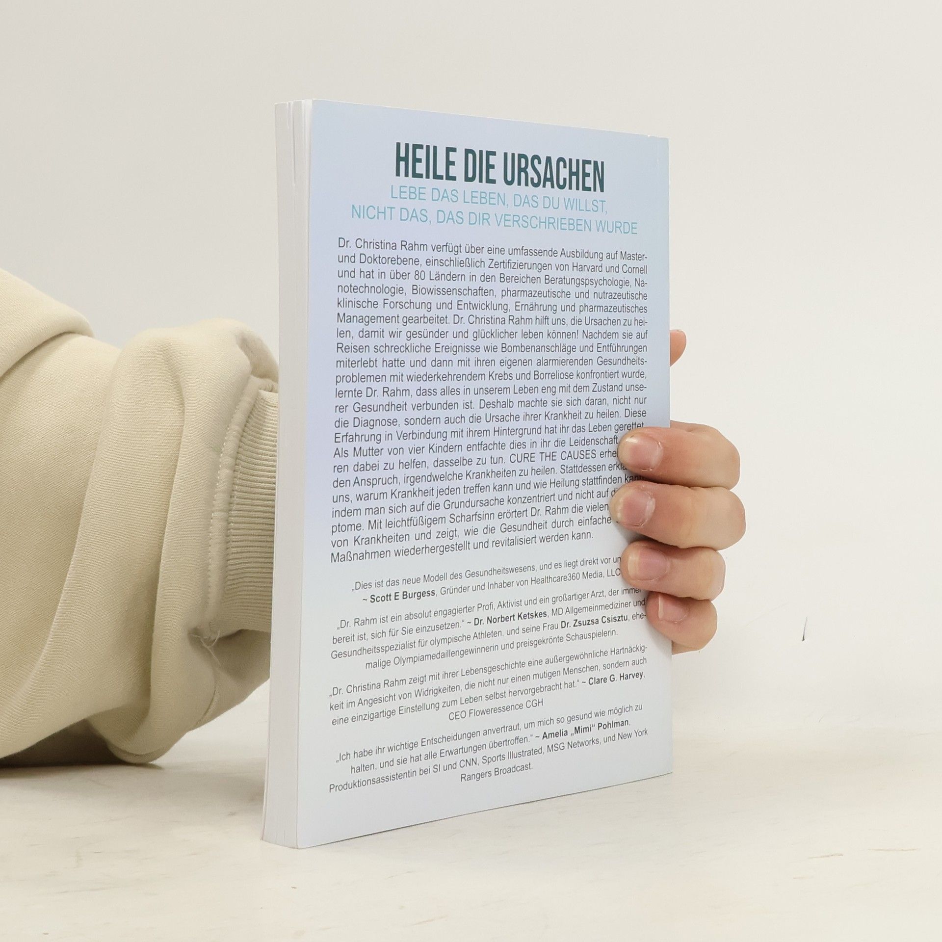 With extensive masters and doctorate level education, including certifications from Harvard and Cornell, working in over 80 countries in the fields of counseling psychology, nanotechnology bioscience engineering, pharmaceutical and nutraceutical clinical research and development, nutrition, and pharmaceutical management, Dr. Christina Rahm brings us Cure The Causes to enable us to live healthier and happier lives! Having experienced horrible events like bombings and kidnappings while traveling, and then facing her own alarming health challenges with recurrent cancer and Lyme disease, Dr. Rahm learned that everything in our lives is intricately connected to the state of our health. Therefore she set out to heal not only the diagnosis but the cause of her illness. This experience coupled with her background saved her life. As a mother of four, this ignited a passion within her to help others do the same. Cure The Causes does not claim to cure any diseases. Instead, it weaves us through why illness can happen to anyone, and how healing can take place by zeroing in on the root cause instead of the symptoms. With easy-going acumen, Dr. Rahm discusses the many facets of dis-ease and how restoring and revitalizing health can take place through simple daily measures.
