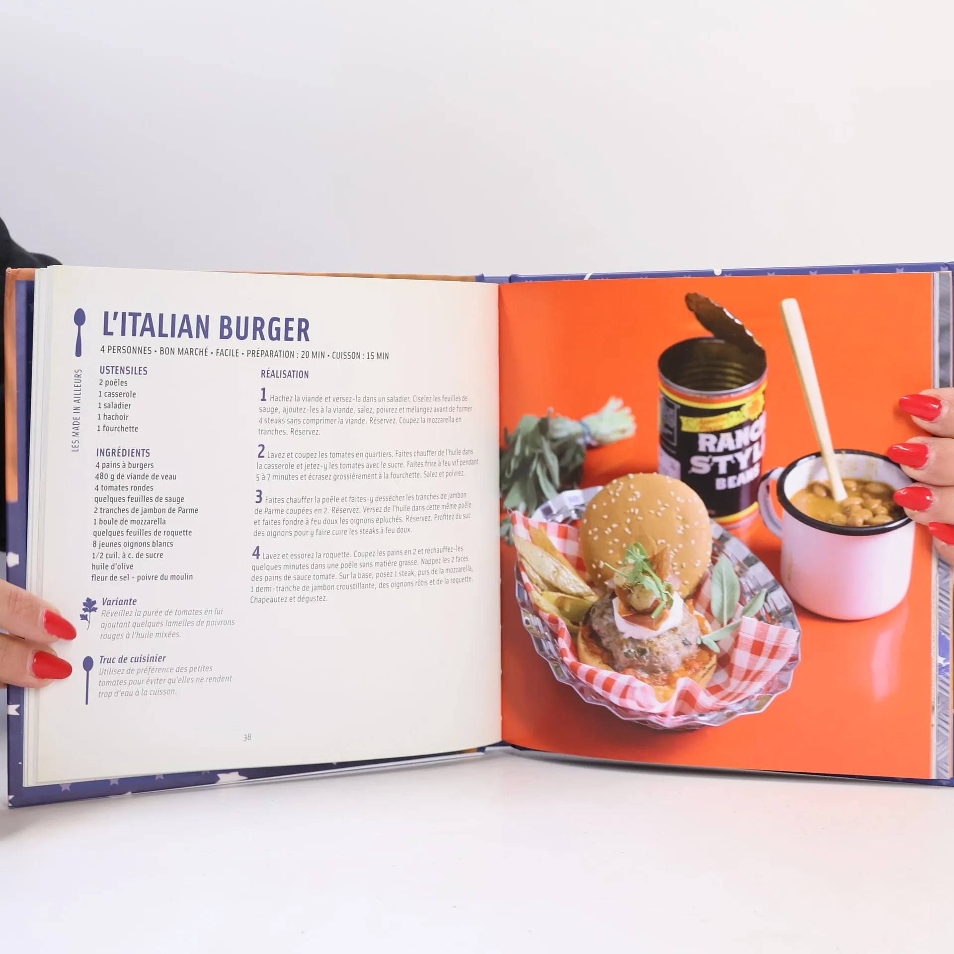 Du pain, de la viande ou du poisson, des légumes, la sauce qui va avec, et hop ! Un burger gourmand et fondant qui composera un parfait repas équilibré. C'est vraiment facile ! Au gré de vos envies et de vos inspirations, composez des burgers et des bagels classiques, « made in ailleurs », girly ou « Big mad ». Avec la recette du pain fournie dans le livre, réalisez des plats 100 % fait maison ! Sans oublier les incontournables frites maison, rösti, coleslaw ou maïs grillé pour accompagner vos burgers. 50 recettes so delicious Super cheese burger, King burger, Burger à cheval, Thaï burger, Mexican burger, Bolliwood burger, Mega green bagel, Tout cru burger, Sweet bagel, Super west burger, Chirachi bagel... Mordez à pleines dents dans ces savoureux burgers !