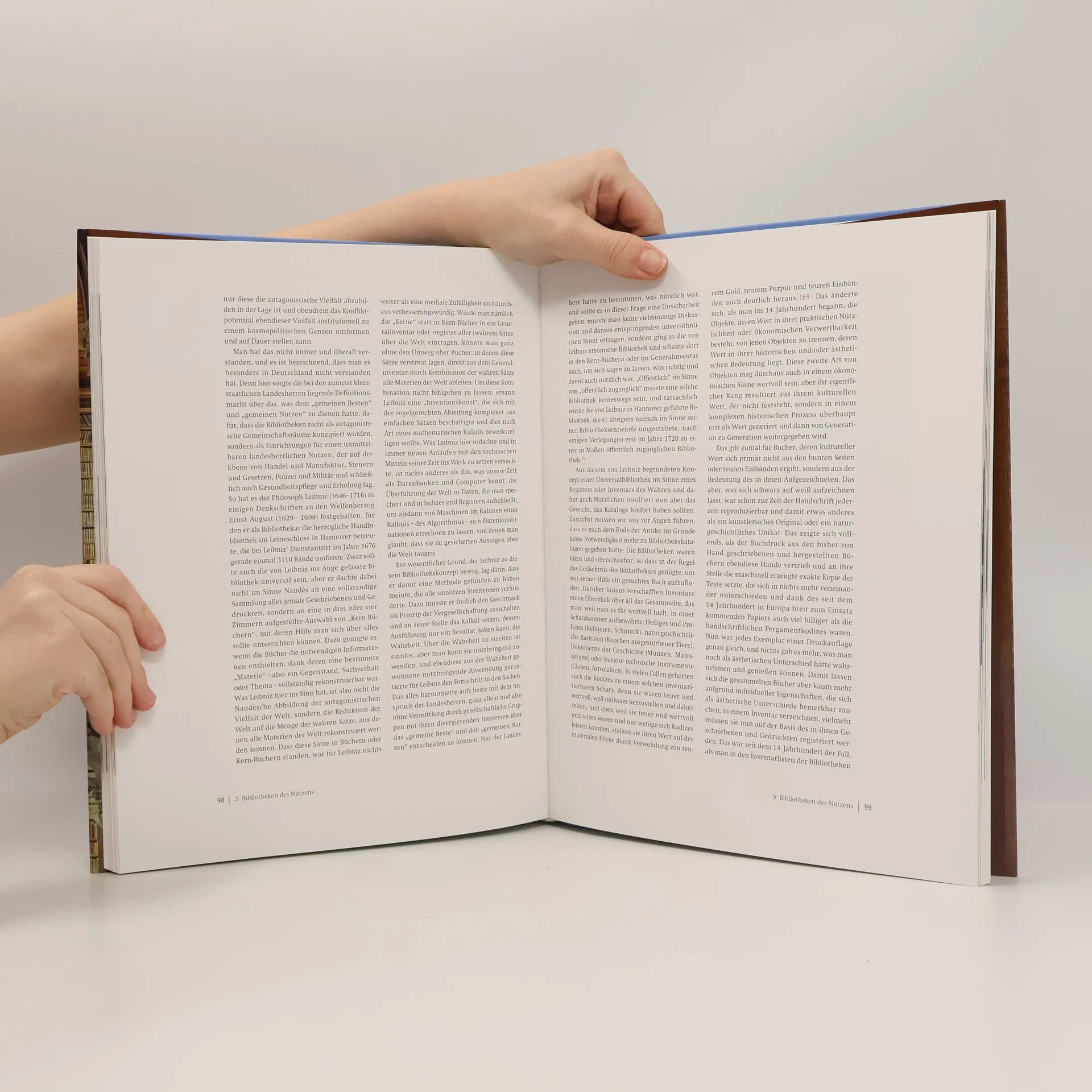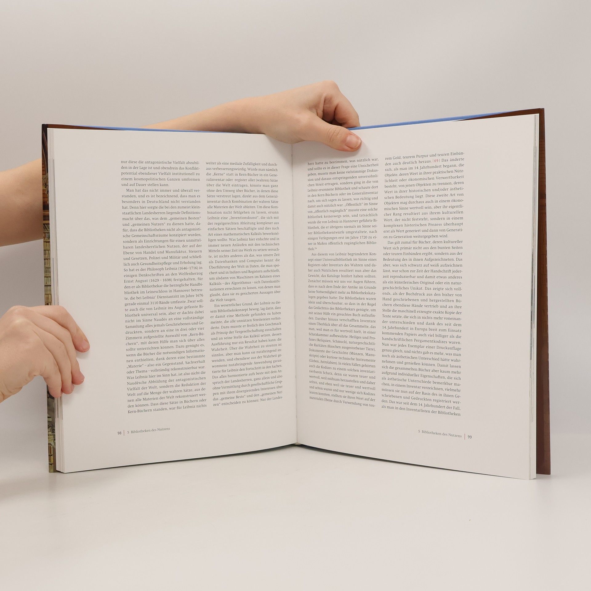 Diese Bibliotheken werden im Mittelalter abgelöst von "Bibliotheken des Heils", die sich auf das heilsrelevante menschliche Handeln und die göttliche Gnade konzentrieren. In der Neuzeit treten "Bibliotheken des Nutzens" an ihre Stelle: Die Landesherren setzen nun eigene Einrichtungen an die Stelle kirchlicher Institutionen, die der Mehrung des Nutzens für das jeweilige Land verpflichtet sind. Die überall entstehenden Universitäts- und Hofbibliotheken gehören in diesen Kontext. Erst am Ende des 20. Jahrhunderts entsteht mit den "digitalen Bibliotheken" etwas qualitativ Neues, indem der Aspekt des "Nutzens" unter digitalem Vorzeichen verstärkt wird - seither stehen die Bibliotheken als Institutionen in Frage.